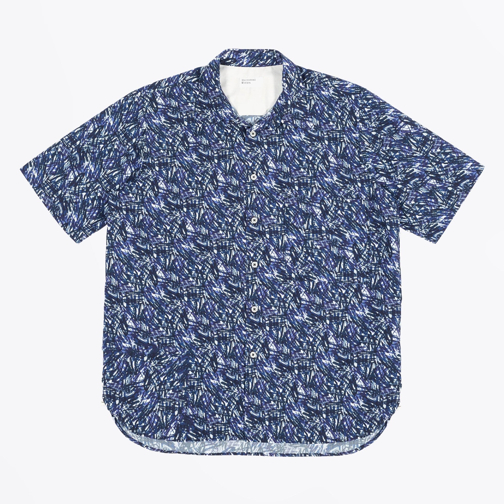 This British designer is a brand shaped by a deep appreciation of the musical and sporting subcultures that underpin the everyday life of British men. Universal Works takes its cultural and contextual heritage and layers it under a nuanced understanding of contemporary menswear needs. This shirt features a striking abstract print and crafted into a comfortable wide fit, from an organic cotton material, with a large chest patch pocket and curved hem. This shirt is easily styled with a pair of Universal Works chinos, or a pair of relaxed fit denim jeans.
