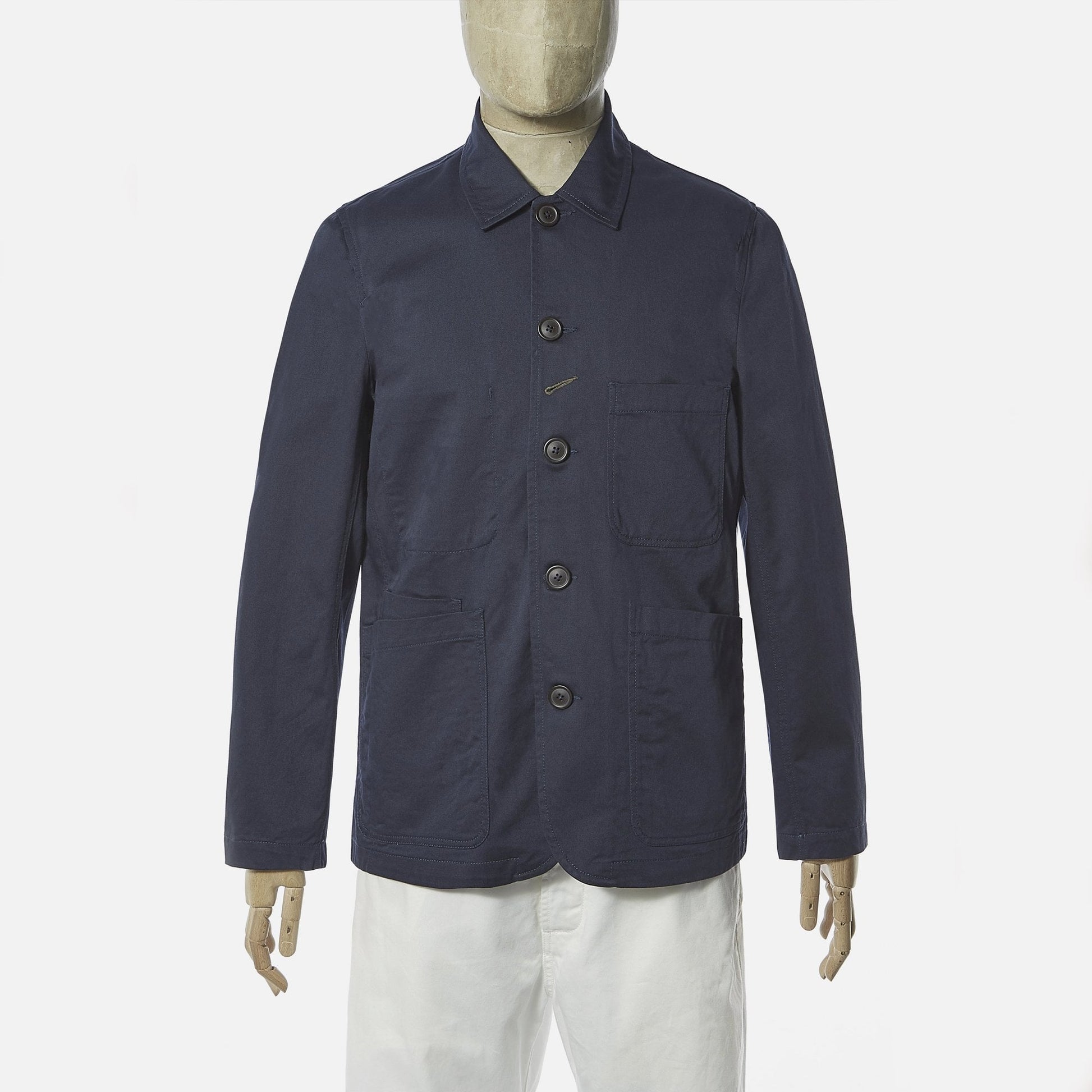 Introducing one of our newest labels, Universal Works to Mr & Mrs Stitch. This British designer is a brand shaped by a deep appreciation of the musical and sporting subcultures that underpin the everyday life of British men. Universal Works takes its cultural and contextual heritage and layers it under a nuanced understanding of contemporary menswear needs. This classic bakers jacket in navy is constructed in 100% cotton. This style of jacket is an original take on the classic 'work' jacket and the perfect example of unstructured tailoring and features a five button front and two lower patch pockets. This jacket has also got one chest patch pocket and one internal pocket. This item is versatile enough to suit all occasions.
