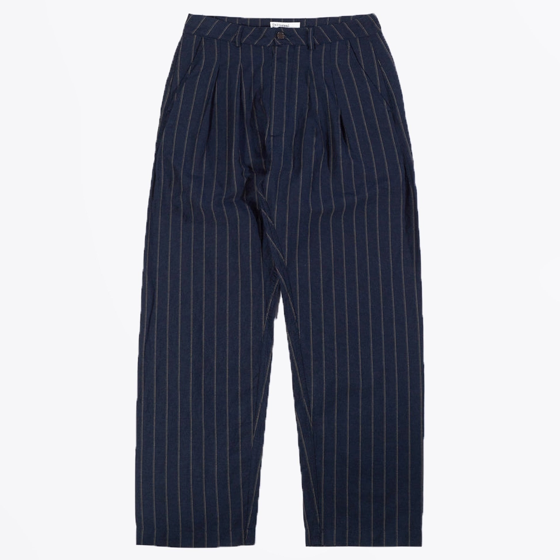 This British designer is a brand shaped by a deep appreciation of the musical and sporting subcultures that underpin the everyday life of British men. Universal Works takes its cultural and contextual heritage and layers it under a nuanced understanding of contemporary menswear needs. A great way to update your new season trouser wardrobe, these pinstripe pants are crafted in a contemporary silhouette with a wide fit and a double pleated front design. Wear these trousers with a Wax London basic tee and a Universal Works jacket, with your favourite pair of designer trainers.
