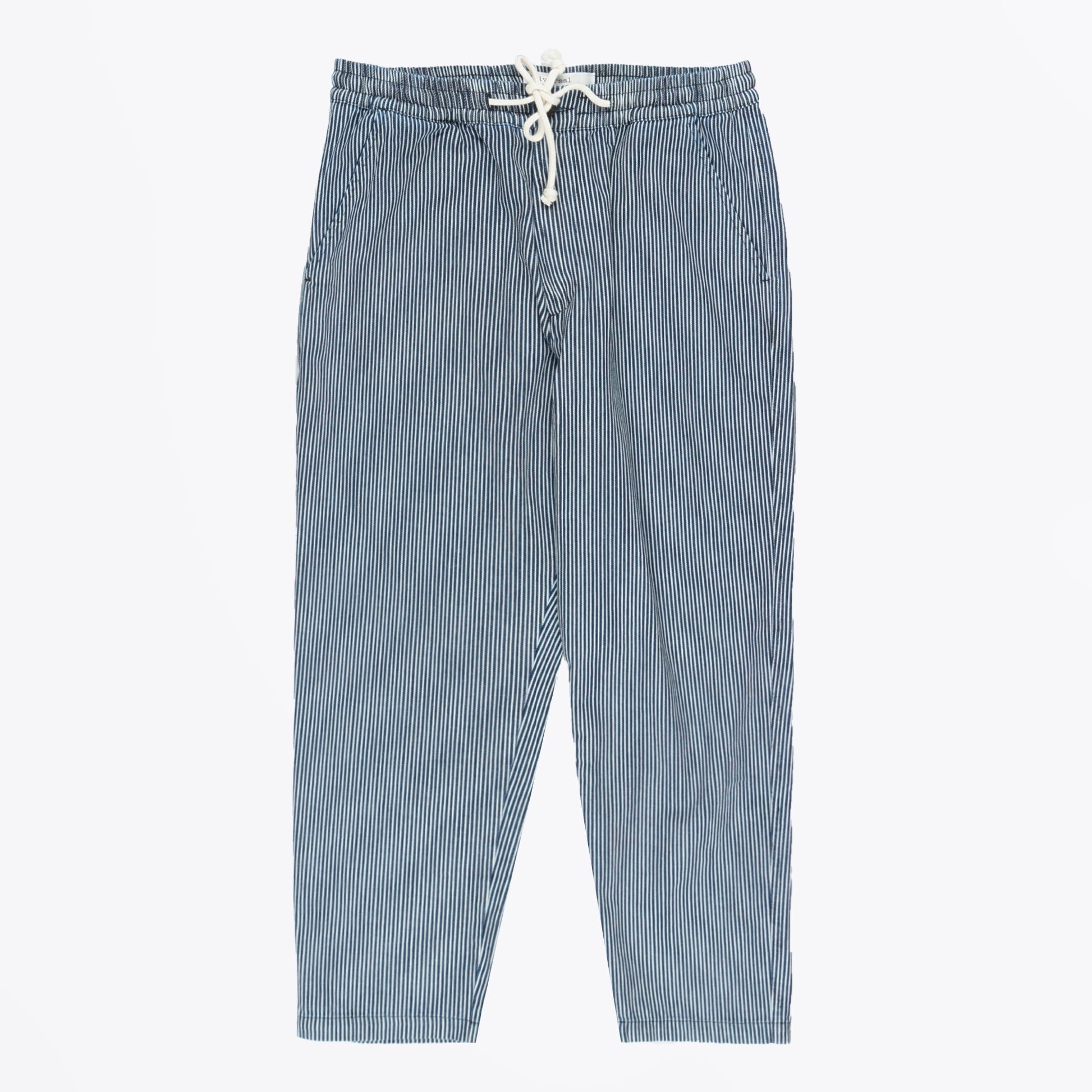 Universal Works is a brand shaped by a deep appreciation of the musical and sporting subcultures that underpin the everyday life of British men. The brand takes its cultural and contextual heritage and layers it under a nuanced understanding of contemporary menswear needs. These trousers are crafted with Cotton in an indigo and white striped pattern, it also features a 4- pocket design and an elasticated waste band. Wear these trousers with the accompanying Universal Works Manor jacket with your favourite designer trainers to complete the look.