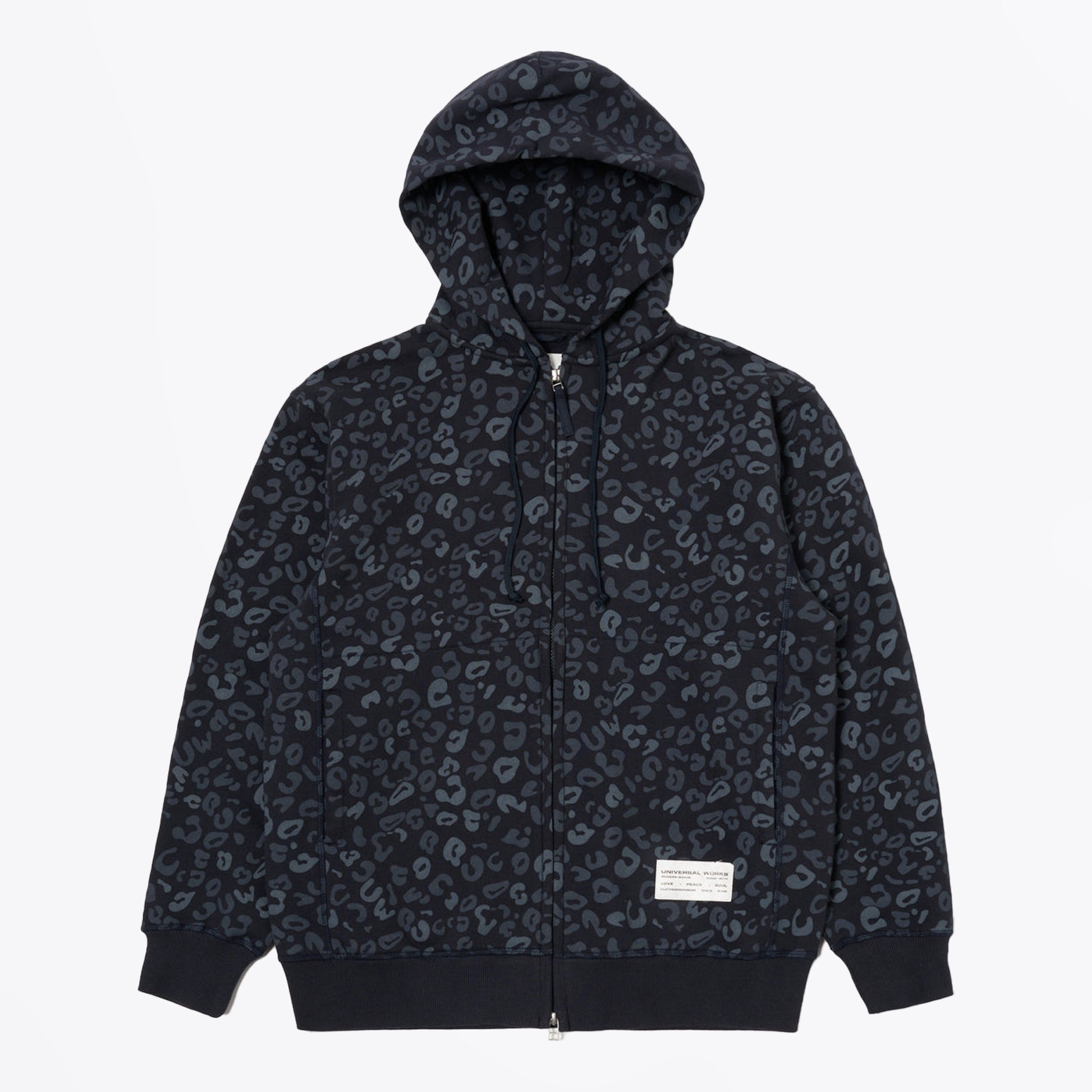 This British designer is a brand shaped by a deep appreciation of the musical and sporting subcultures that underpin the everyday life of British men. Universal Works takes its cultural and contextual heritage and layers it under a nuanced understanding of contemporary menswear needs. Adding contemporary to your style to your wardrobe, this winter with this hoody. This hoody has a navy leopard print design, two-way zip fastening, long sleeves, flatlock detailing, ribbed hem and cuffs. Wear this sweater with an Oliver Spencer trousers and a pair of designer Hoff sneakers.