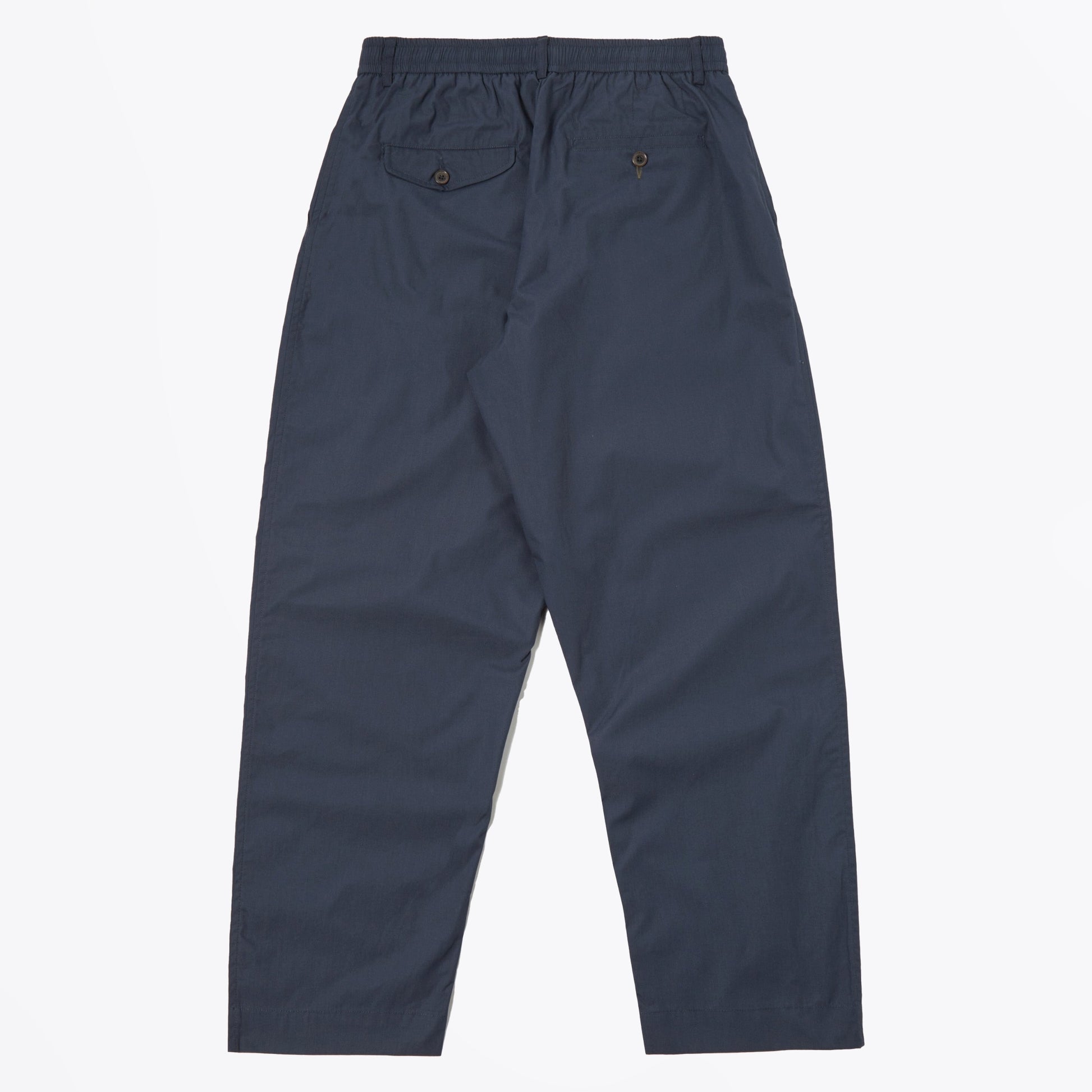 This British designer is a brand shaped by a deep appreciation of the musical and sporting subcultures that underpin the everyday life of British men. Universal Works takes its cultural and contextual heritage and layers it under a nuanced understanding of contemporary menswear needs. Adding contemporary to your style to your wardrobe, this navy Oxford trouser features a wide loose leg, pleated front, rear button close button pockets, one button fly closure and two side pockets. Wear this trouser with a Universal Works jacket and a pair of designer Hoff sneakers.