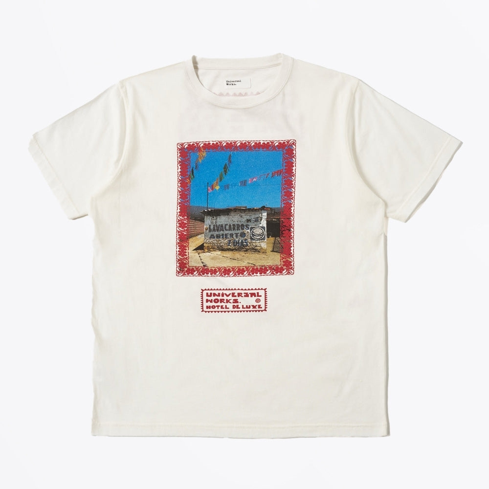 This British designer is a brand shaped by a deep appreciation of the musical and sporting subcultures that underpin the everyday life of British men. Universal Works takes its cultural and contextual heritage and layers it under a nuanced understanding of contemporary menswear needs. This classic tee is crafted from 100% organic yarn, with a soft feel finish. The perfect way to add a luxury brand to your staple wardrobe, this tee features a retro chest print across the front, adding a bit of fun to the garment. This top is made in a relaxed fit and finished off with a ribbed crew neckline. Pair this top with your favourite pair of jeans and under a Universal Works jacket for a trendy everyday look.
