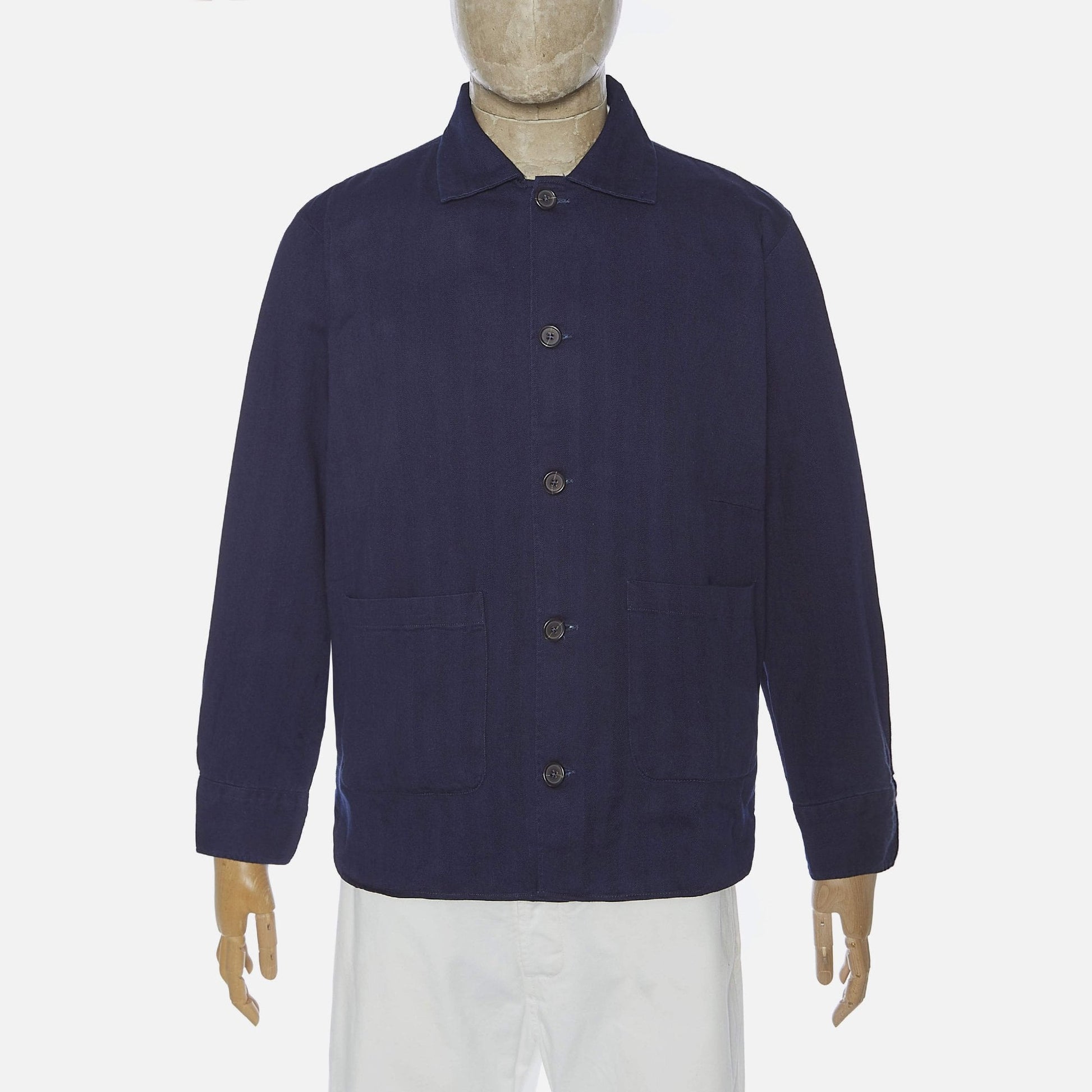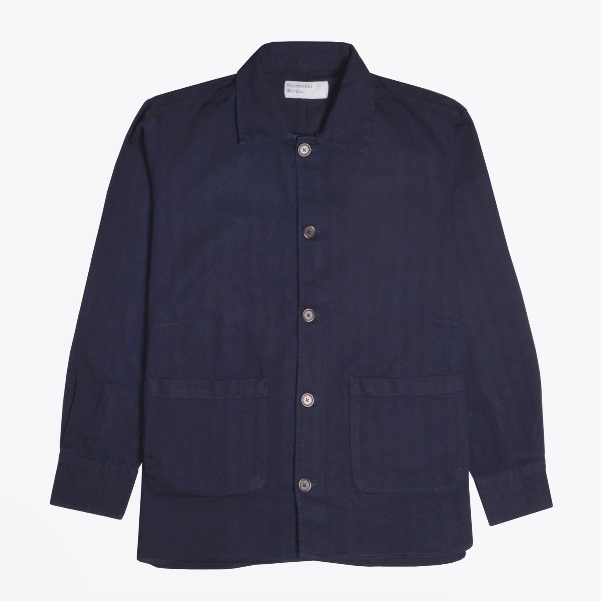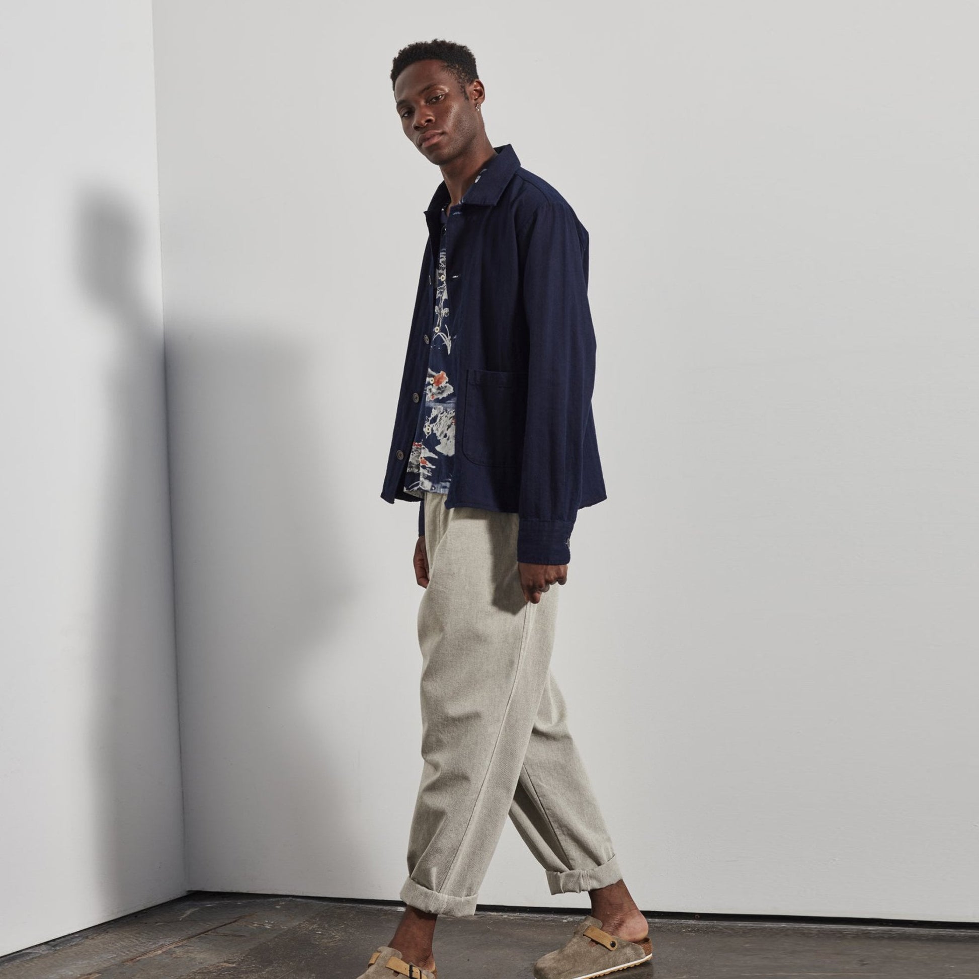 Introducing one of our newest labels, Universal Works to Mr & Mrs Stitch. This British designer is a brand shaped by a deep appreciation of the musical and sporting subcultures that underpin the everyday life of British men. Universal Works takes its cultural and contextual heritage and layers it under a nuanced understanding of contemporary menswear needs. New for SS21, the 'Travail Shirt' has all the components needed to become your new favourite overshirt, complete with hybrid jacket styling. Named for its distinctive chevron-like similarities to the 'Herring' fish, this particular version has been double-indigo dyed and is constructed in 100% cotton with a soft handle. The perfect example of summer styling and features a five button-down front, single-piece collar and two lower patch pockets. This shirt also features a dropped, curved hem with contrast fabric 'V' insert and button adjustable cuffs.