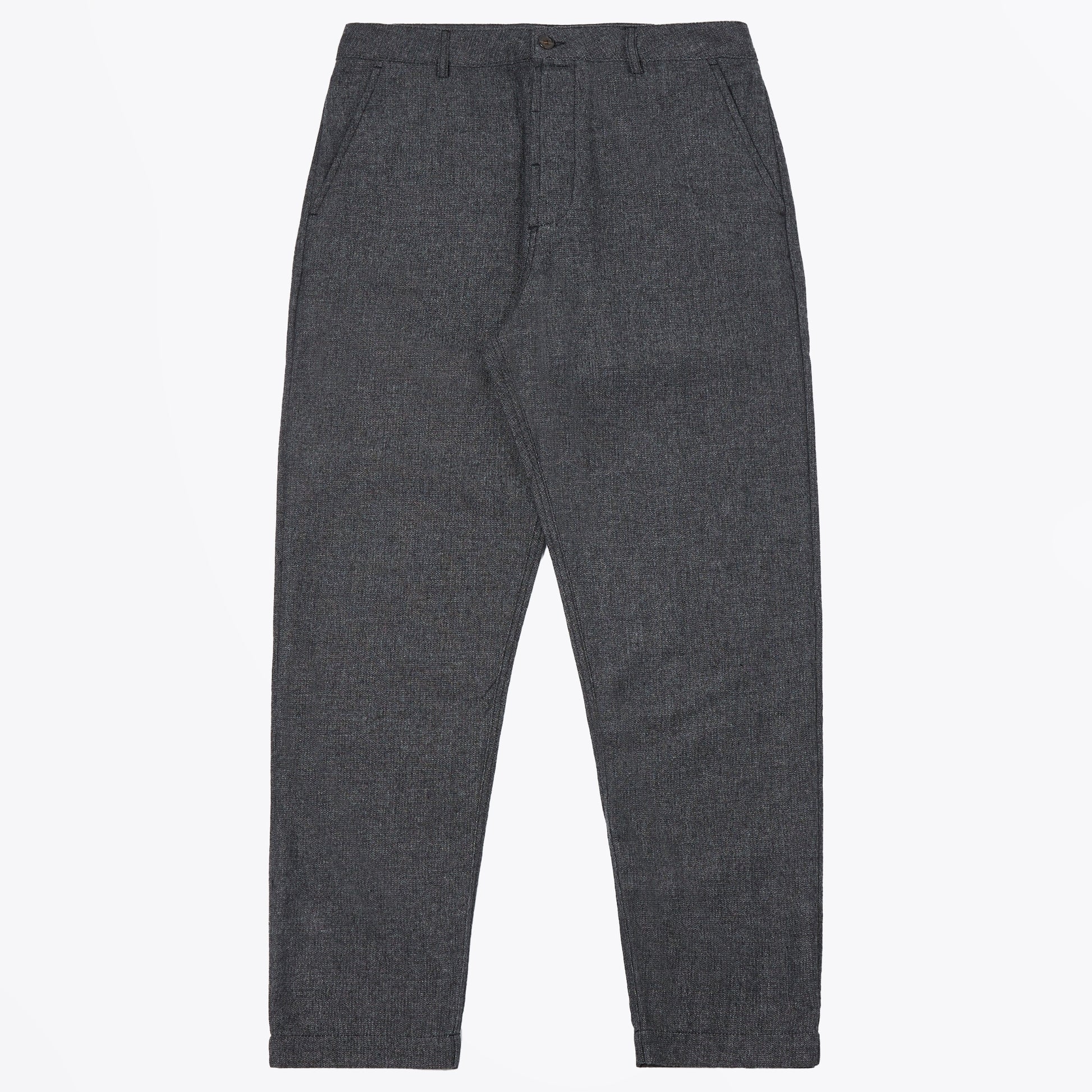 This British designer is a brand shaped by a deep appreciation of the musical and sporting subcultures that underpin the everyday life of British men. Universal Works takes its cultural and contextual heritage and layers it under a nuanced understanding of contemporary menswear needs. Providing a traditional spin on a contemporary trouser style, these pants are crafted in a grey wool blend material, with side pockets, buttoned back pockets, belt loops, and a buttoned fastening. Wear these trousers with a knitted jumper and a Universal Works jacket.