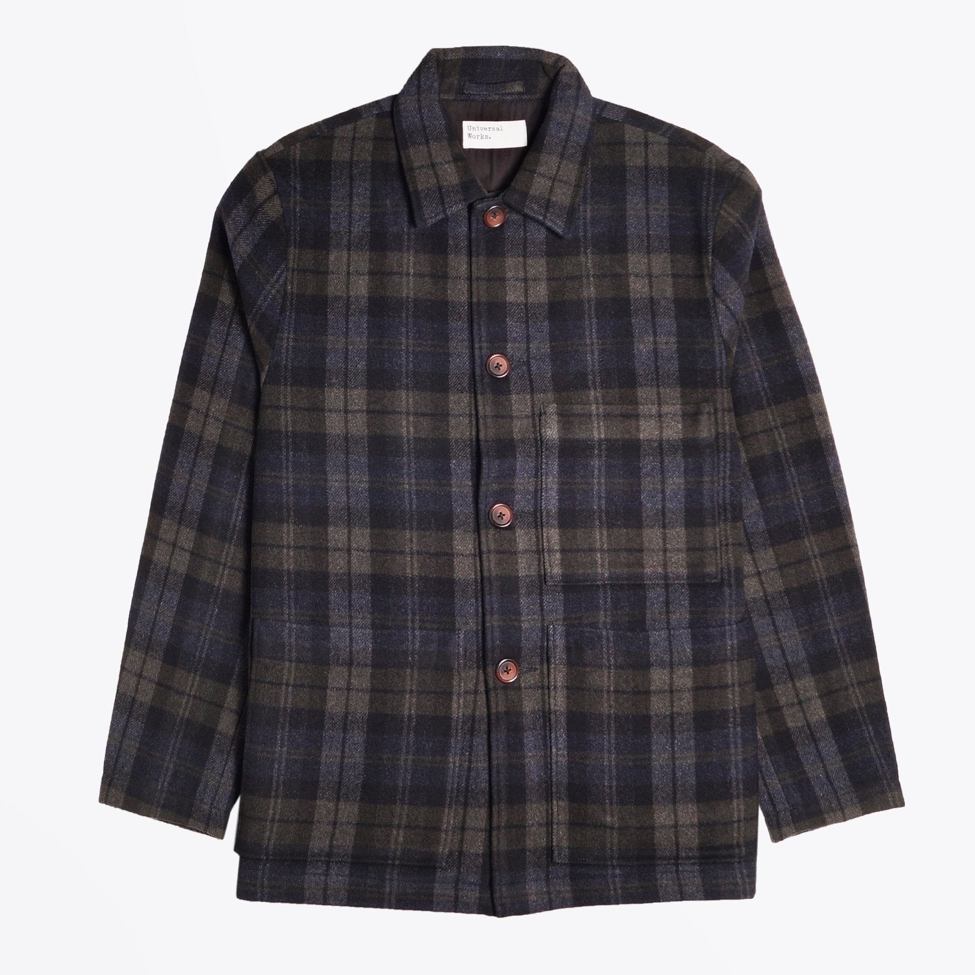 Introducing one of our newest labels, Universal Works to Mr & Mrs Stitch. This British designer is a brand shaped by a deep appreciation of the musical and sporting subcultures that underpin the everyday life of British men. Universal Works takes its cultural and contextual heritage and layers it under a nuanced understanding of contemporary menswear needs. This classic simple bakers jacket in grey, black and green is constructed in a wool blend. The perfect example of unstructured tailoring and features a four button front, single and two lower patch pockets. This jacket has also got one chest patch pocket and one internal pocket. Fully-lined to allow for better ease of movement when wearing. This item is versatile enough to suit all occasions.