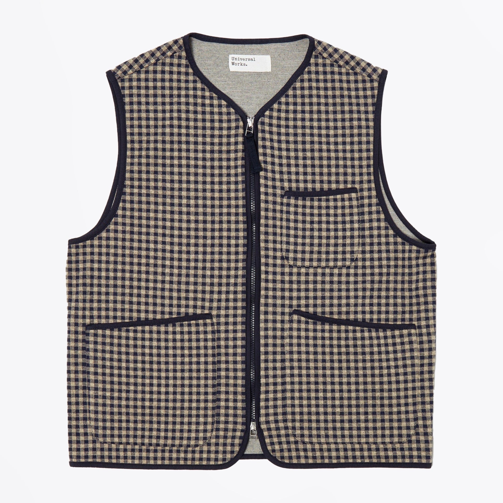 This British designer is a brand shaped by a deep appreciation of the musical and sporting subcultures that underpin the everyday life of British men. Universal Works takes its cultural and contextual heritage and layers it under a nuanced understanding of contemporary menswear needs. Adding a lightweight option to your summer outfits, this checked gilet is crafted in a soft knitted material, with a 3-pocket front, a zip fastening, and a blue bias-bound edge. Wear this gilet over a plain tee and some designer trainers.