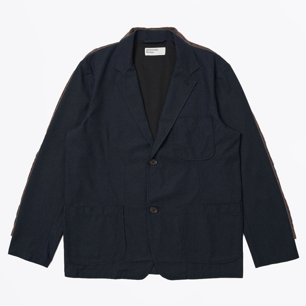 This Universal Works Valencia Cotton Two Button Jacket combines contemporary style with relaxed comfort. Featuring a longer, wider lapel and subtle waist shaping, this navy jacket strikes the perfect balance between structured and laid-back. The two-piece sleeve construction ensures a refined fit, while practical patch pockets—two at the lower front and one at the chest—add functional appeal. Ideal for effortless layering and versatile styling. Crafted from a sustainable blend of 45% recycled cotton, 25% polyester, 15% viscose, and 15% recycled acrylic. Care for your jacket by washing at 30 degrees, avoiding bleach and tumble drying, using a warm iron, and steering clear of dry cleaning to maintain its quality.