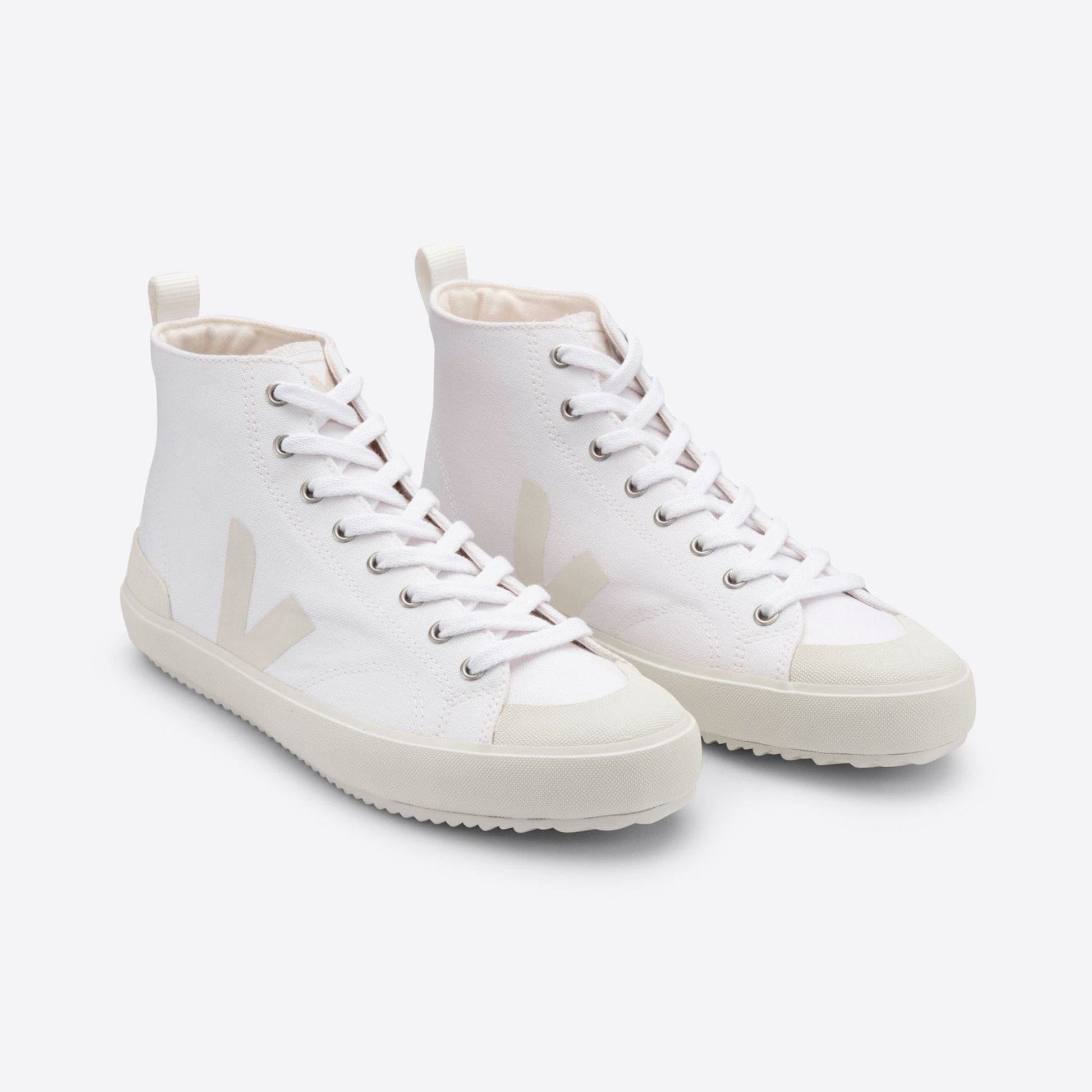 With a focus on transparency and environmentally and socially responsible practices, the sneaker brand Veja produces cult trainers with a conscience. Explore the French label’s signature styles, all crafted ethically with sustainable materials such as recycled bottles and fairtrade cotton. The Nova Hi-Top sneaker hosts a minimalistic, crisp retro silhouette with an added sustainability aspect. Featuring Canvas uppers and panels, this sneaker has a logo V made of rubber, recycled polyester lining and wild rubber sole. In a white colourway. Team your Veja trainers with your favourite jeans, dresses or skirts.