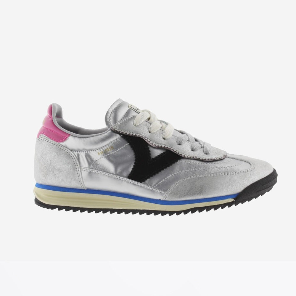 Introducing the newest season of the Victoria the historic contemporary footwear brand. Victoria started in the 1915 with a vision is to give life to all love stories through their carefully curated footwear. Victoria is a mixture of innovative, tradition and design to create the best quality footwear for daily use. Women’s sneakers crafted from metallic nylon with layered metallic and synthetic panels. Black suede side ‘V’, contrasting leather-effect heel logo, two-tone laces, and a two-tone sole with serrated black tread for superior grip. Wear these sneakers with a cool Stand Studio jacket and a pair of Paige jeans.