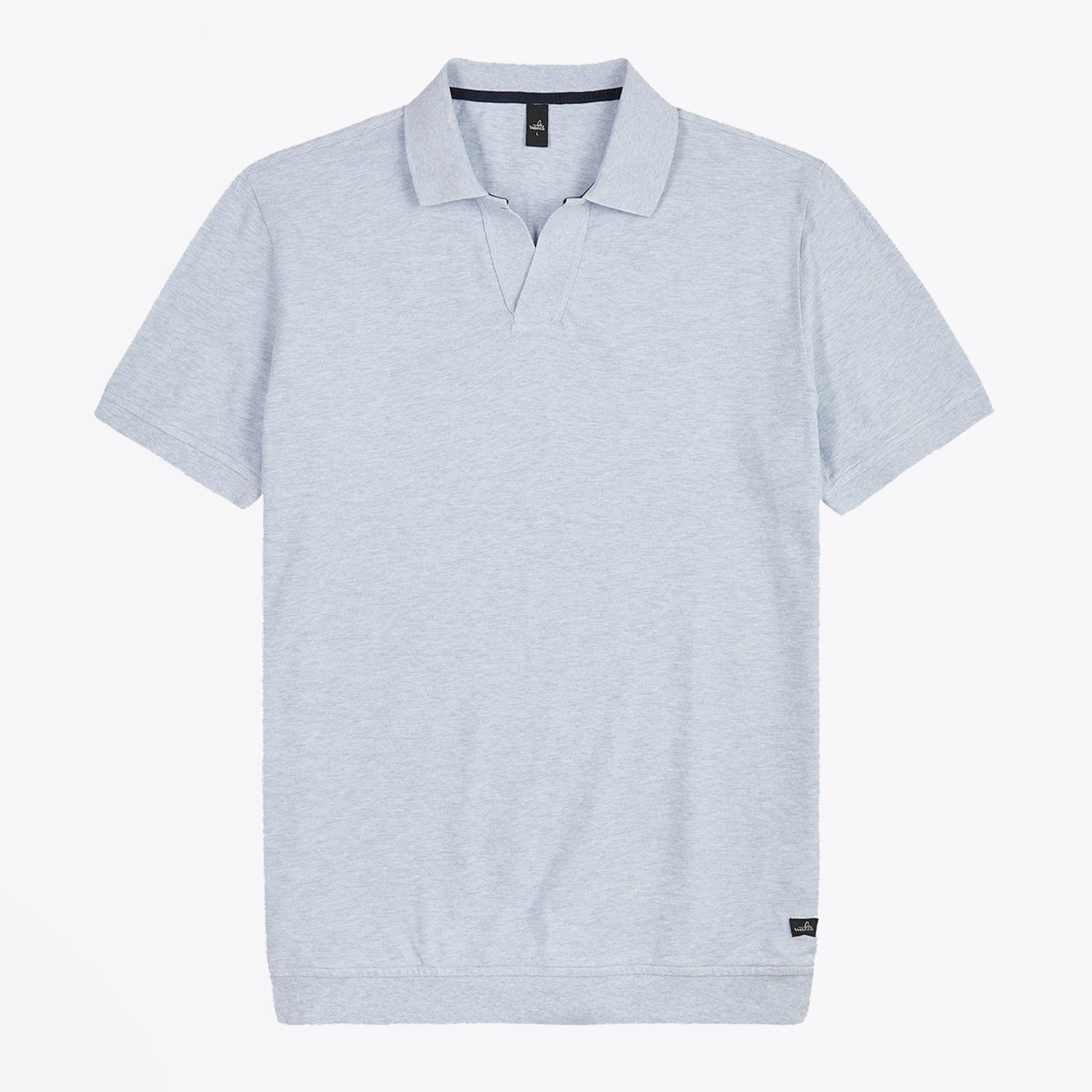 This retro polo shirt has been knitted from an extra clean and breathable cotton piqu�� with a soft touch and a durable and breathable finish. This style of polo shirt is the perfect example of refined minimal dressing and is finished with a retro collar, retro buttonless placket and ribbed collar, cuffs, and hem, so it's comfortable and more laid back. This casual men's t-shirt is the comfortable first layer of a smart casual look.