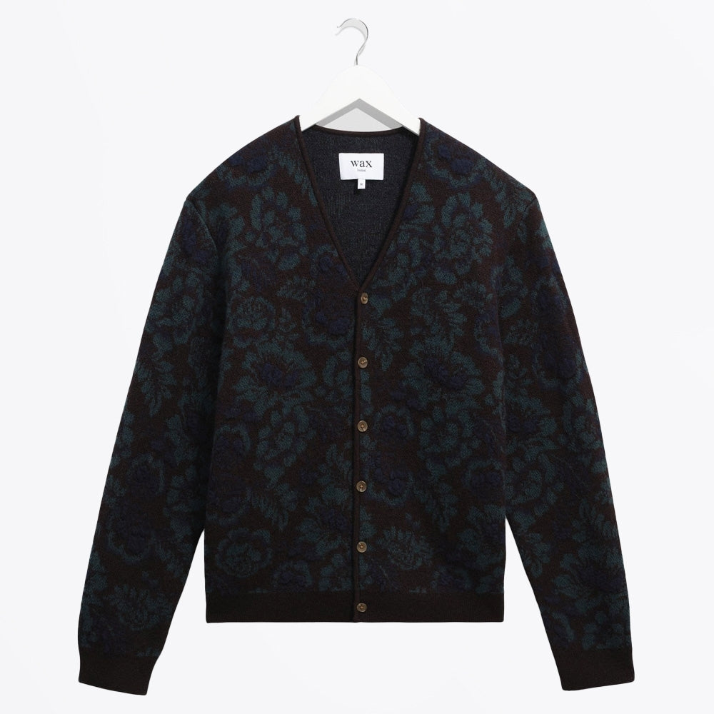 Wax London was founded with a dedication to create premium menswear with sustainability at its core. The brand aims to bring the manufacturing of British outerwear back to the UK. Wax London sources the most sustainably produced fabrics, using natural dyeing techniques, manufacturing closer to home, and donating profits to charity. Add some variety to your collection with this Wax London cardigan. This Alban cardigan features a floral jacquard knitted design throughout with black, navy and green yarns woven throughout, button up fastening, ribbed hem and cuffs. Wear this cardigan with a pair of Wax London trousers and pair of Hoff sneakers.