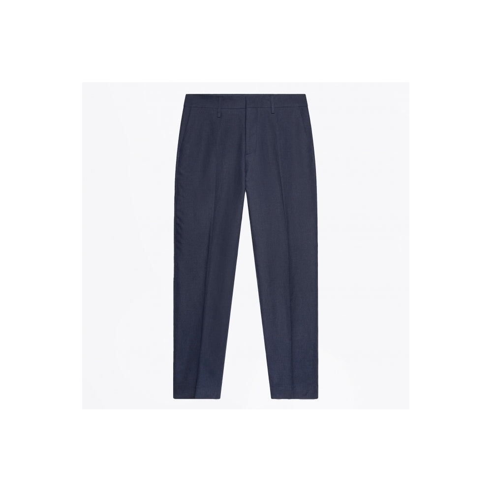 Wax London was founded with a dedication to create premium menswear with sustainability at its core. The brand aims to bring the manufacturing of British outerwear back to the UK. Wax London sources the most sustainably produced fabrics, using natural dyeing techniques, manufacturing closer to home, and donating profits to charity. Update your suit trousers with hight quality materials and designer branding. These navy trousers feature a hook and zip fly fastening, with side pockets, buttoned back pockets, and belt loops. Wear these trousers with some Paul Smith leather shoes and the matching Wax London jacket.