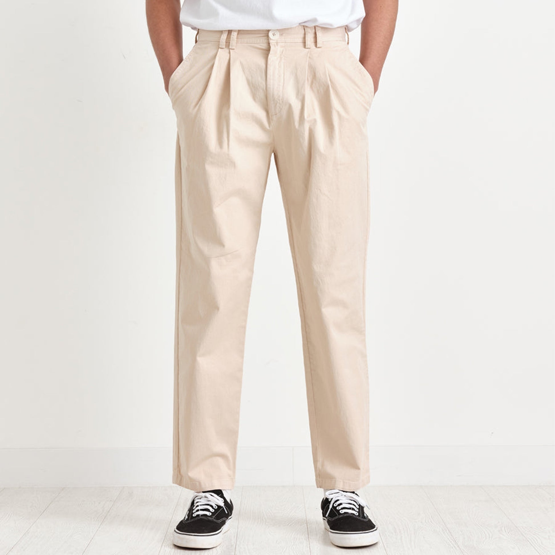 Wax London was founded with a dedication to create premium menswear with sustainability at its core. The brand aims to bring the manufacturing of British outerwear back to the UK. Wax London sources the most sustainably produced fabrics, using natural dyeing techniques, manufacturing closer to home, and donating profits to charity. Add some contemporary design that is easily styled up or down with this Wax London option. These sand-coloured trousers feature a double pleated front, with a chunky button, and zip fly and side pockets. Wear these trousers with a pair of Paul Smith trainers, and an overshirt.