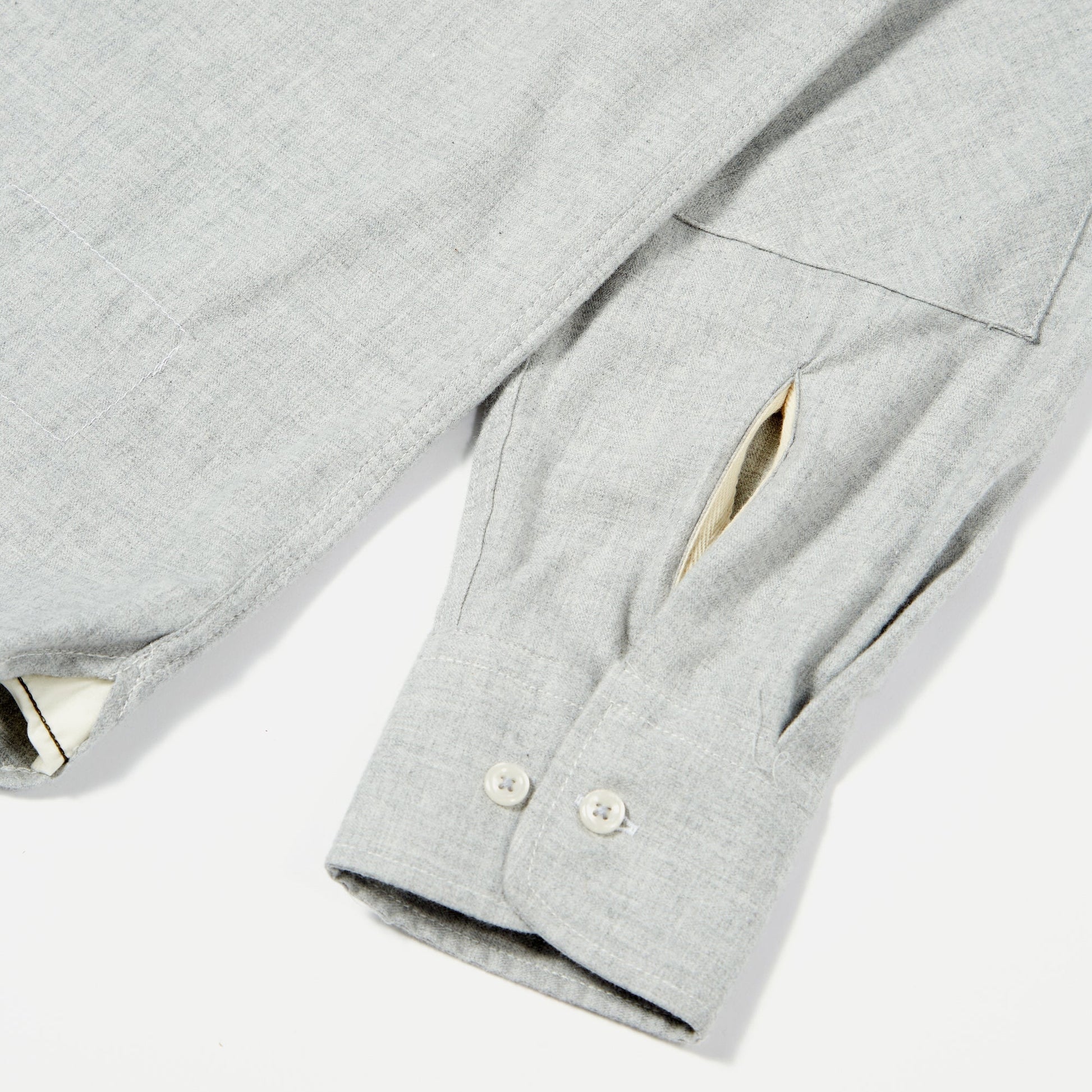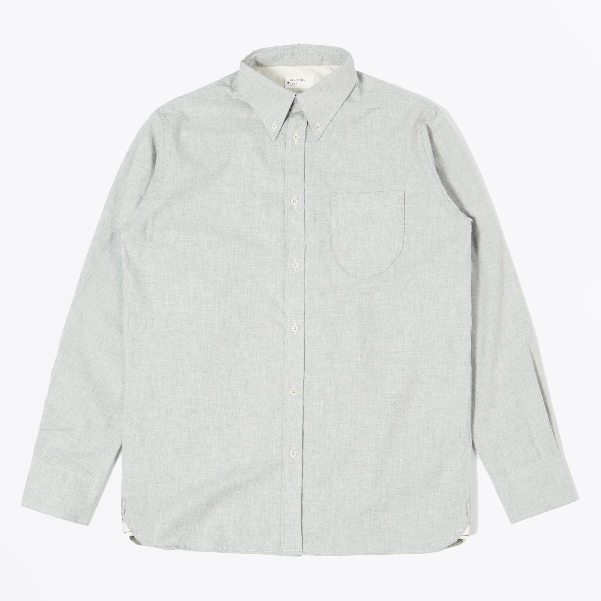 This British designer is a brand shaped by a deep appreciation of the musical and sporting subcultures that underpin the everyday life of British men. Universal Works takes its cultural and contextual heritage and layers it under a nuanced understanding of contemporary menswear needs. Update your winter wardrobe with a great layering piece with this shirt. This shirt is crafted in a slightly brushed cotton in a grey shade, with a button-down fastening, a buttoned collar, and a patch breast pocket. Style this shirt open over a Wax London t-shirt, with some straight leg jeans.