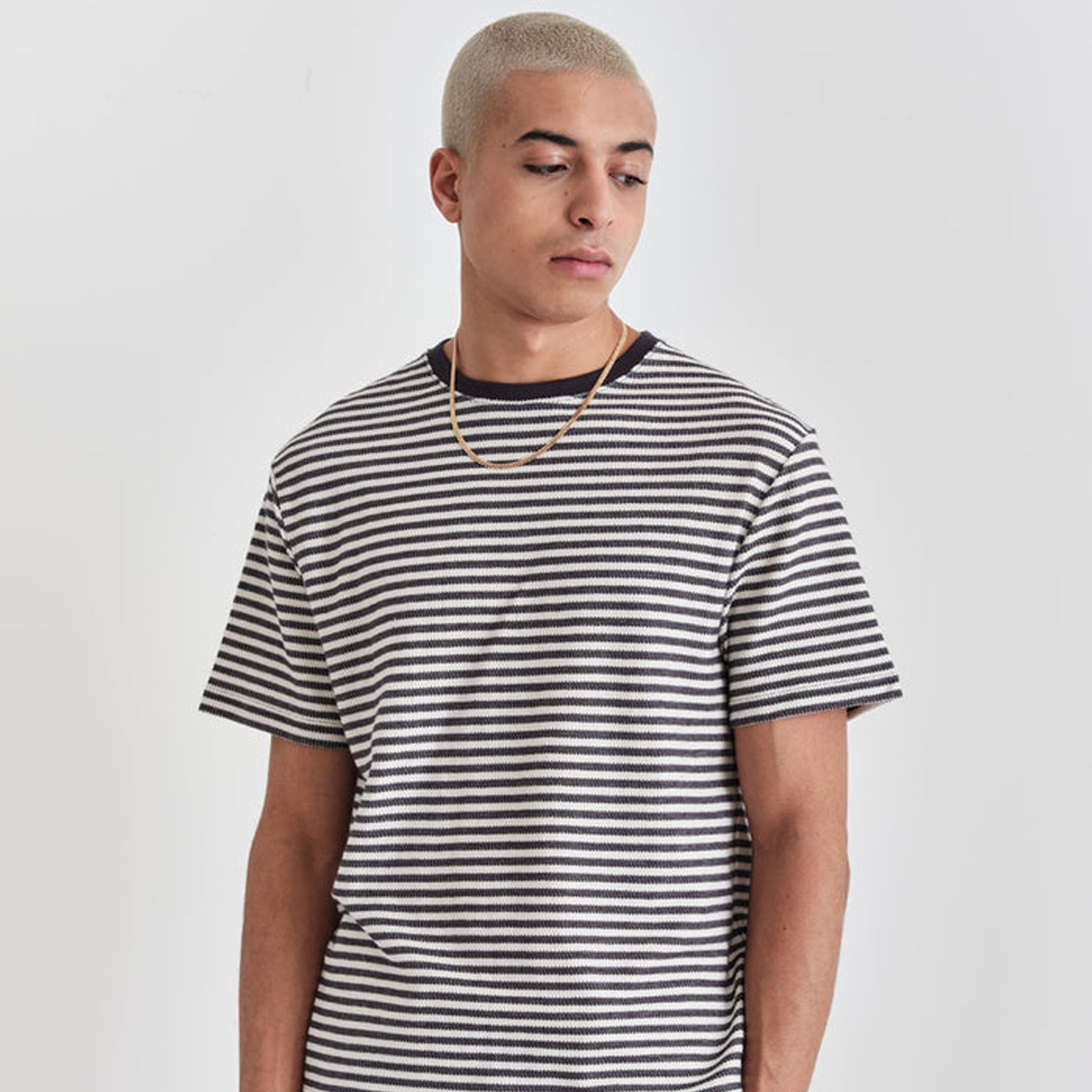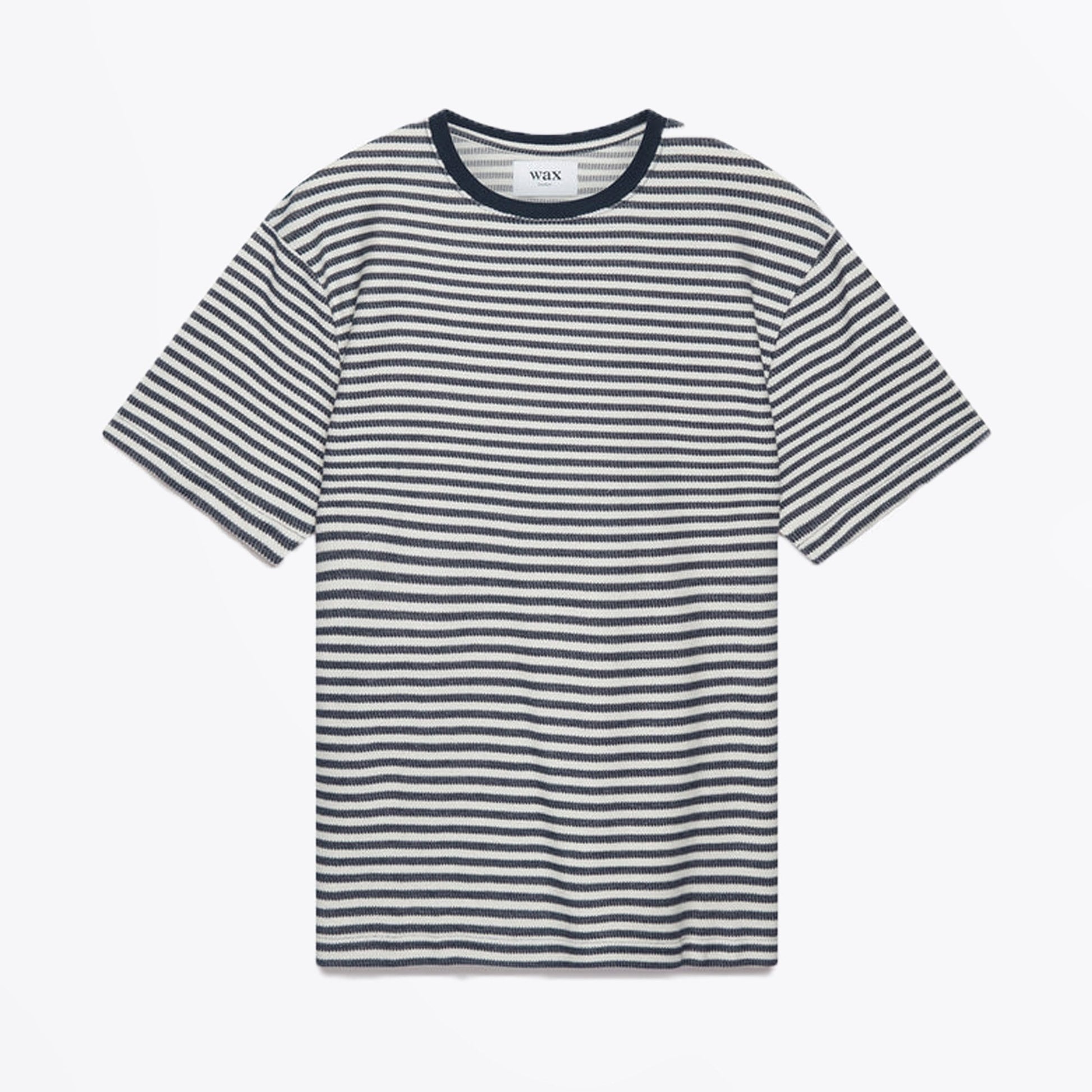Wax London was founded with a dedication to create premium menswear with sustainability at its core. The brand aims to bring the manufacturing of British outerwear back to the UK. Wax London sources the most sustainably produced fabrics, using natural dyeing techniques, manufacturing closer to home, and donating profits to charity. The only thing better than a great everyday staple, is when it is also sustainable. This striped tee is the perfect example of sustainable fashion meeting function. Featuring a navy and ecru stripe design, this tee is crafted from organic cotton into a knitted material. Wear this top under a Wax London jacket, with your favourite pair of jeans and some designer trainers for a great date night outfit.