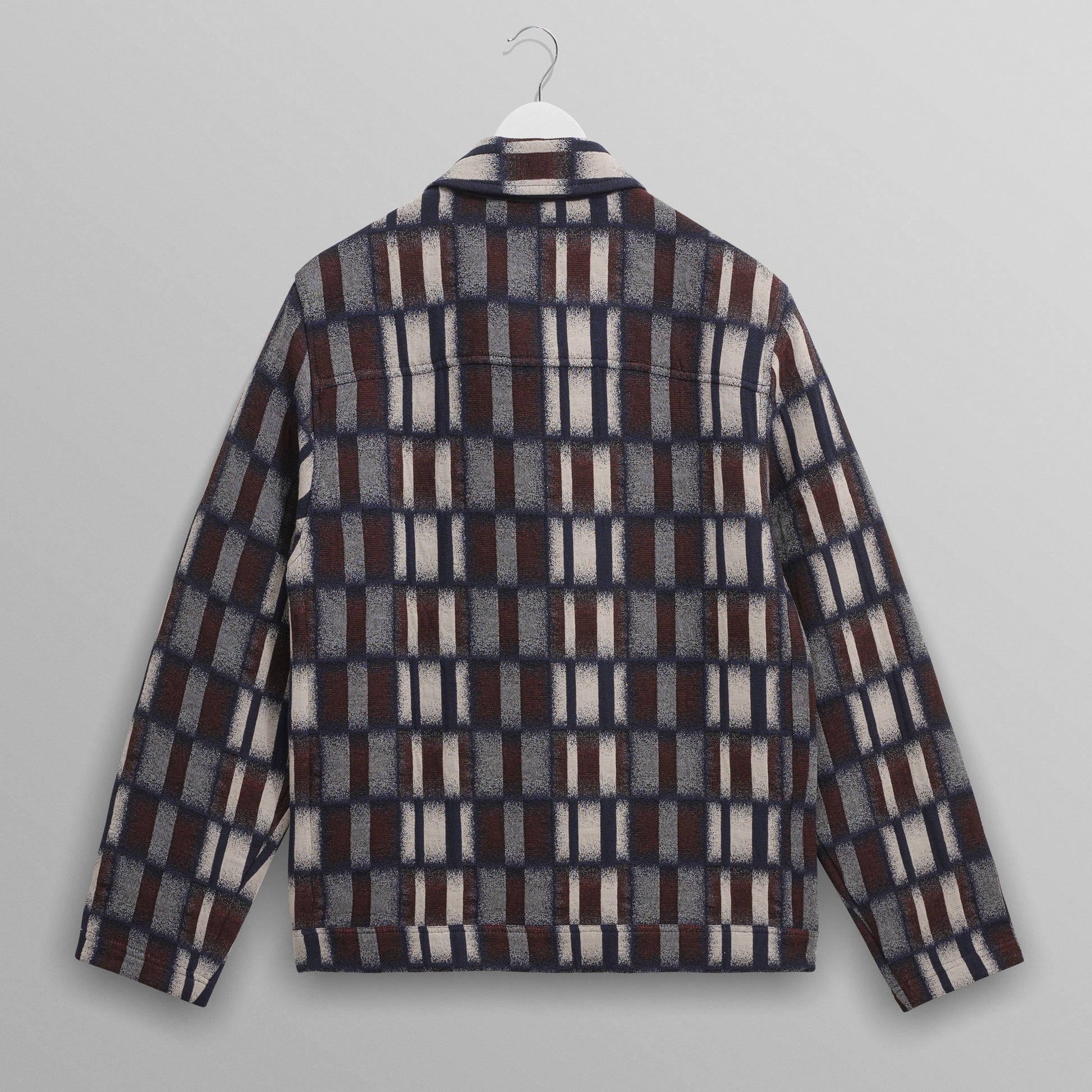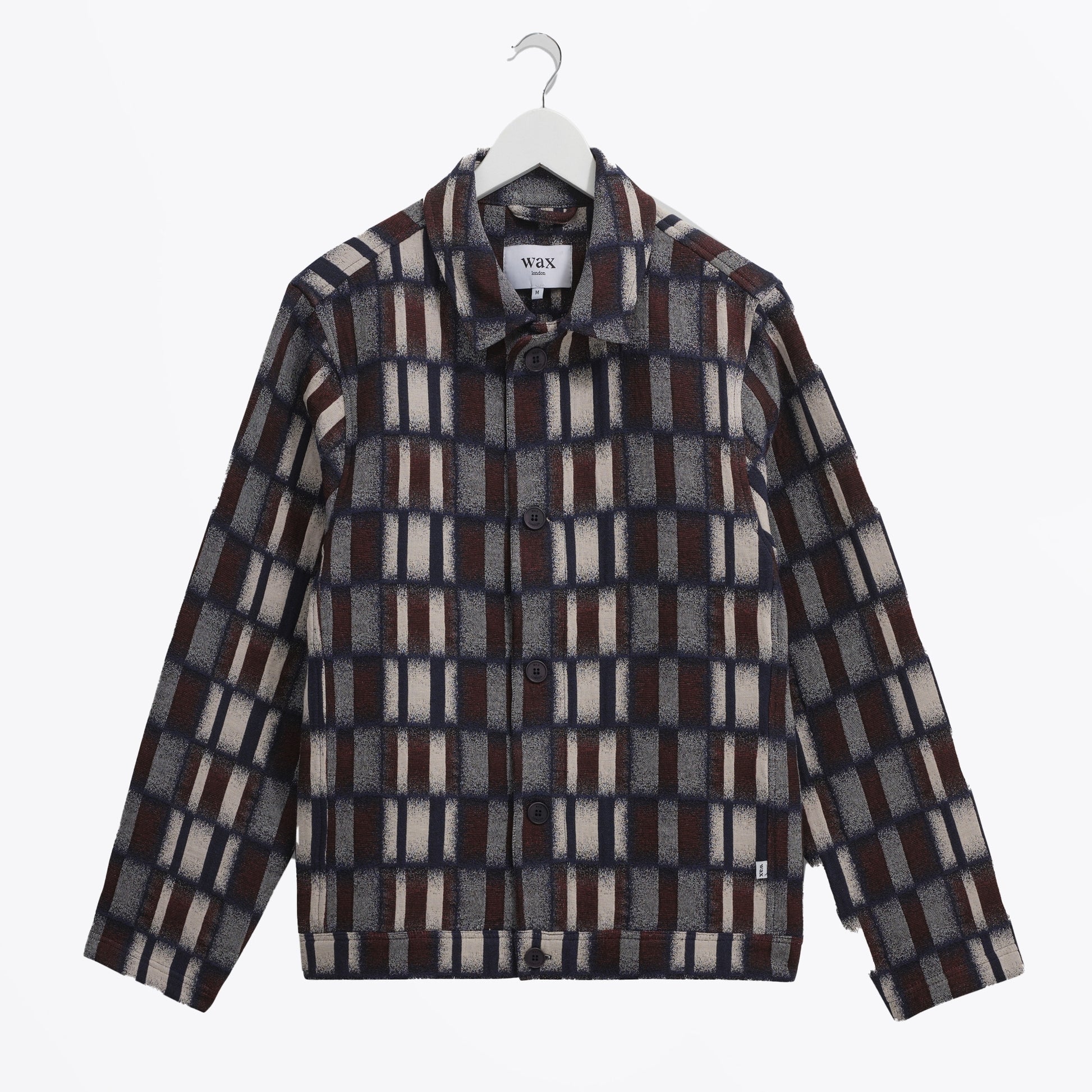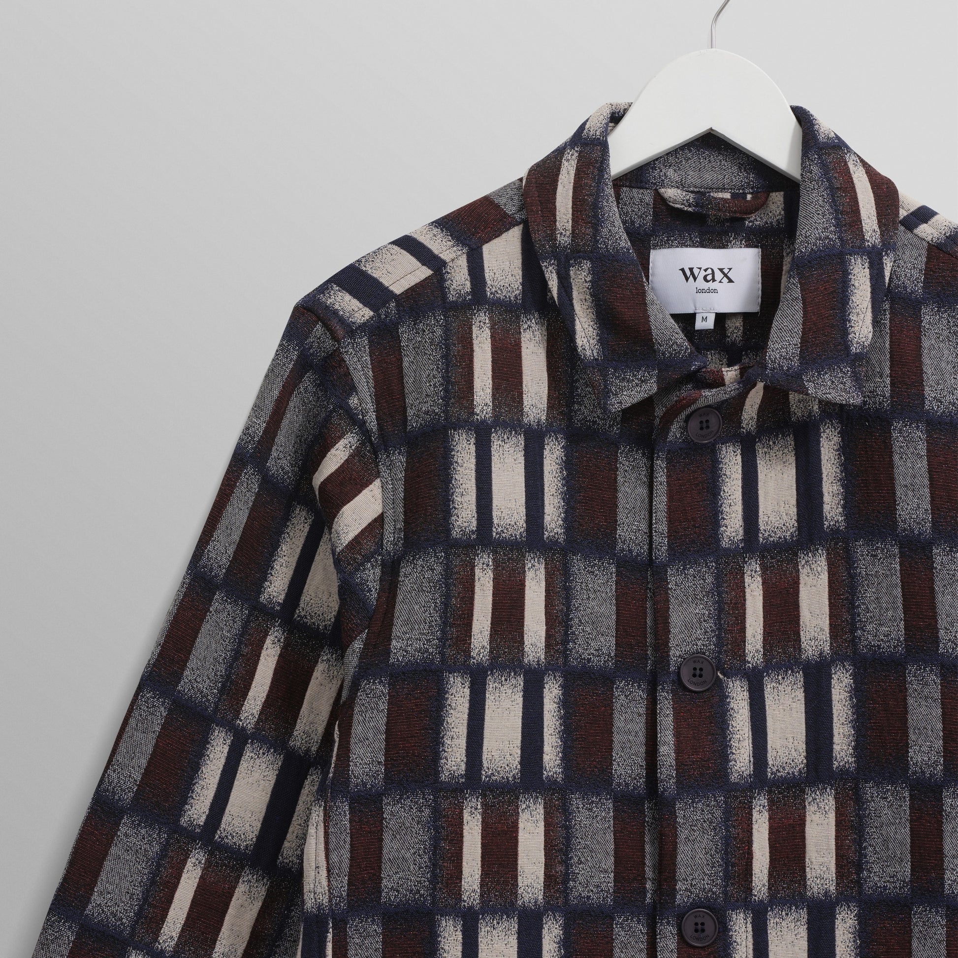 The Iggy Jacket is a standout Wax signature. Cut for a relaxed, boxy fit, it features a beige, blue, and black ombre grid pattern crafted from a lightly textured recycled cotton blend. This unlined jacket is the ideal throw-on-and-go piece, offering both style and functionality. Finished with discreet in-seam side pockets, it provides a clean, minimalist look with practical details.