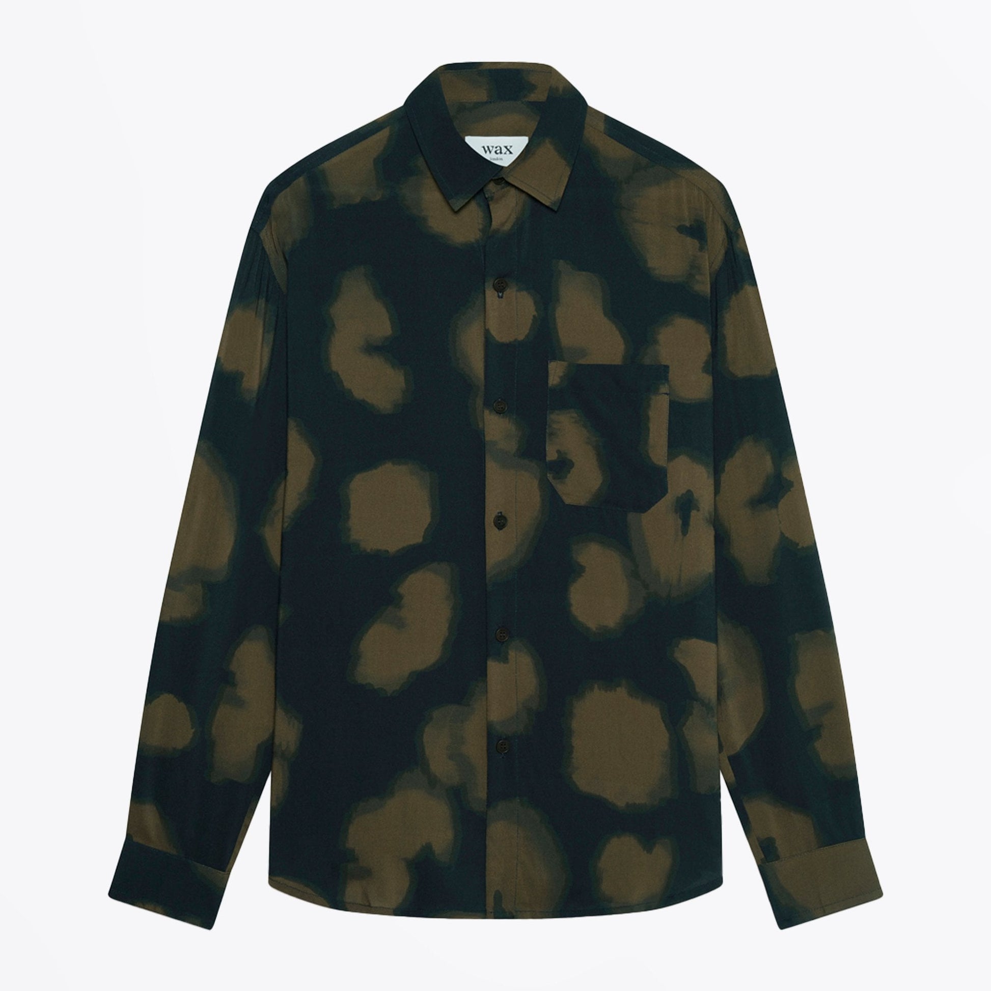 Wax London was founded with a dedication to create premium menswear with sustainability at its core. The brand aims to bring the manufacturing of British outerwear back to the UK. Wax London sources the most sustainably produced fabrics, using natural dyeing techniques, manufacturing closer to home, and donating profits to charity. Add some variety to your shirt collection with this Wax London shirt. This shirt features bled dye print in khaki and navy shades, with a patch pocket on the breast, a collared neckline, buttoned cuffs, and a button-down fastening. Wear this shirt with a pair of Nudie Jeans and some designer trainers.