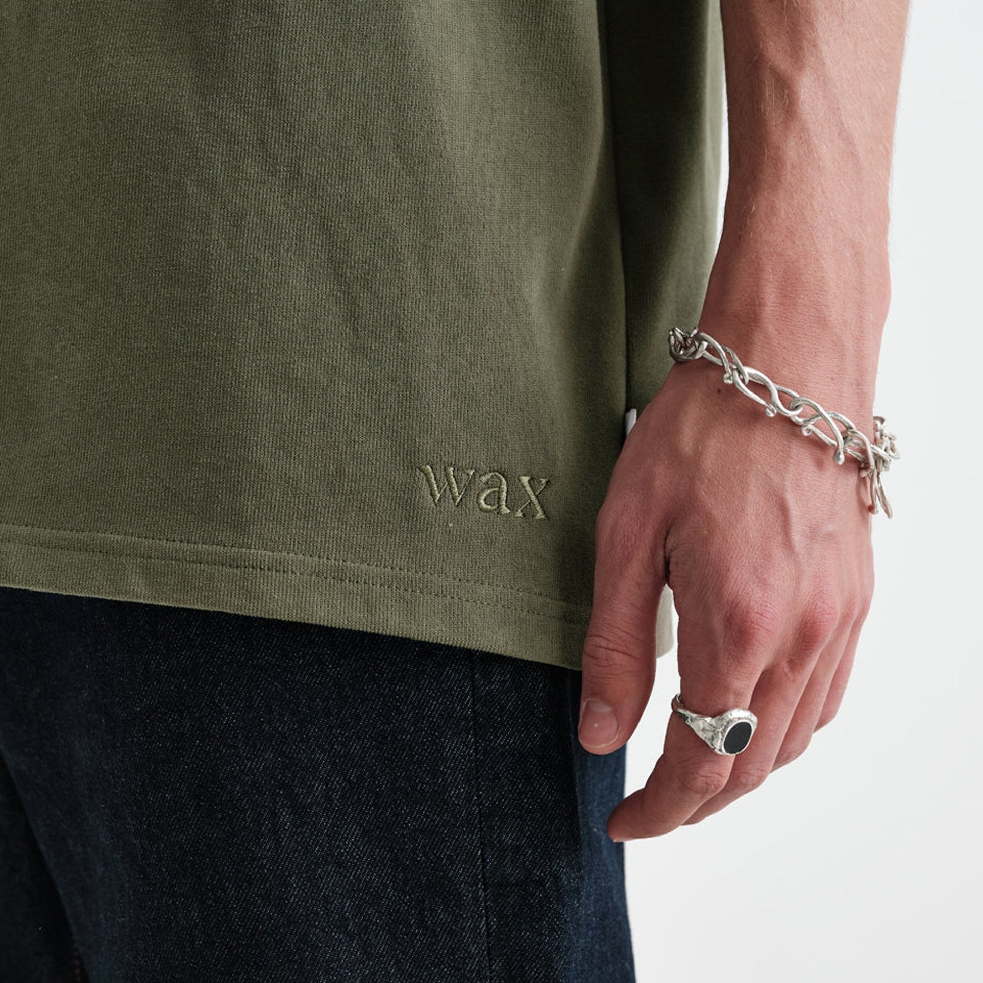 Wax London was founded with a dedication to create premium menswear with sustainability at its core. The brand aims to bring the manufacturing of British outerwear back to the UK. Wax London sources the most sustainably produced fabrics, using natural dyeing techniques, manufacturing closer to home, and donating profits to charity. Crafted from a wonderfully soft cotton material, this tee is a great way to update your daily staples this year. Featuring the Wax London logo embroidered on the hem and on a fabric tab in the side seam, this khaki tee has a crew neckline, short sleeves, and is in a slightly oversized fit. Wear this t-shirt with a pair of Nudie Jeans and some designer trainers.
