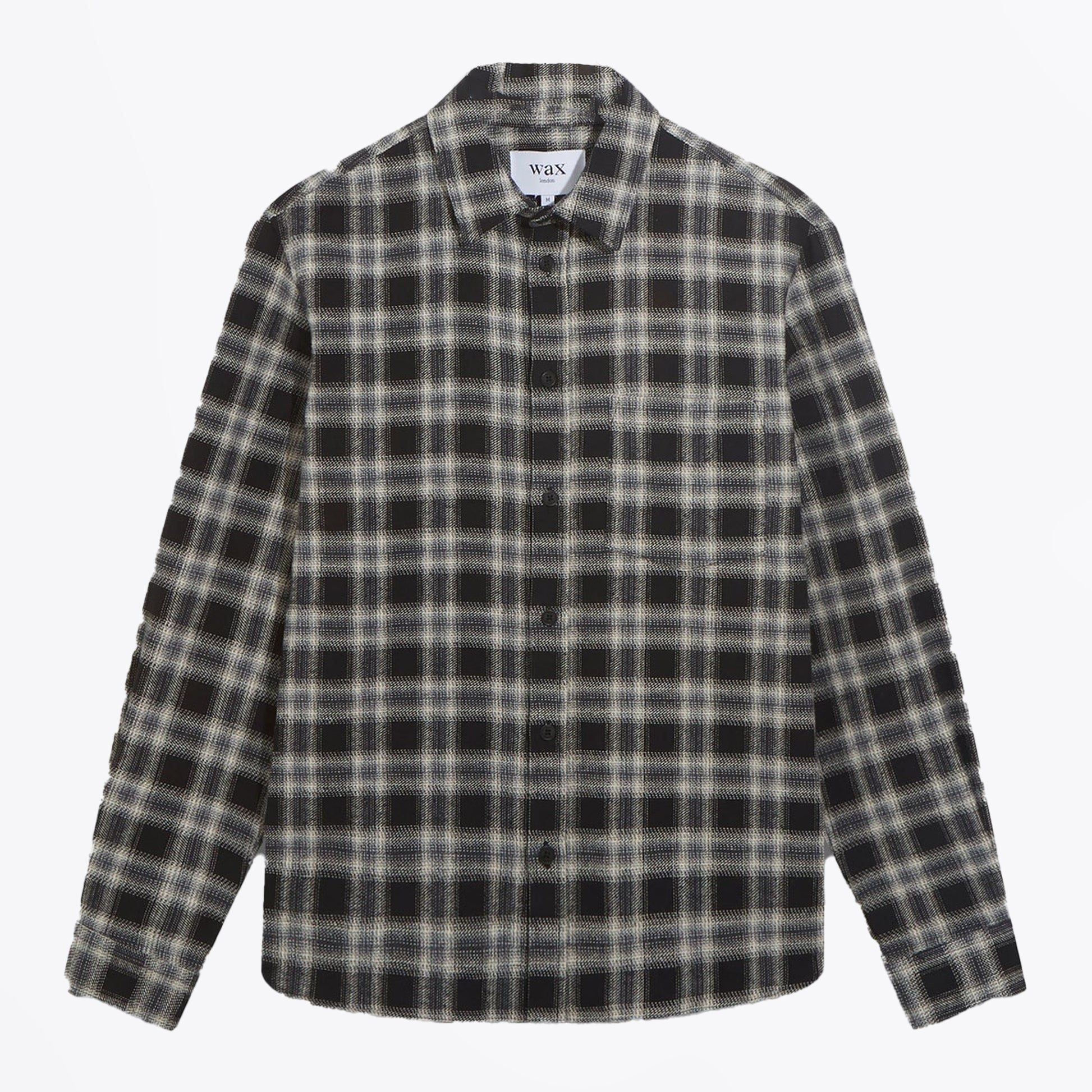 Wax London was founded with a dedication to create premium menswear with sustainability at its core. The brand aims to bring the manufacturing of British outerwear back to the UK. Wax London sources the most sustainably produced fabrics, using natural dyeing techniques, manufacturing closer to home, and donating profits to charity. A great way to add some variety to your new season wardrobe, this shirt features a check black and white check print design. It also includes a front patch pocket, buttoned cuffs, a buttoned-down fastening, and a collared neckline. Wear this overshirt with a Wax London basic top and some designer jeans for a great casual look.