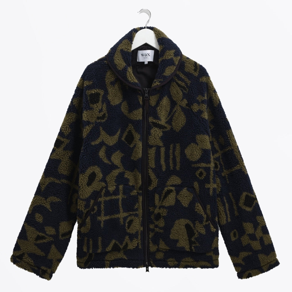Wax London was founded with a dedication to create premium menswear with sustainability at its core. The brand aims to bring the manufacturing of British outerwear back to the UK. Wax London sources the most sustainably produced fabrics, using natural dyeing techniques, manufacturing closer to home, and donating profits to charity. Add some variety to your collection with this option from Wax London. This Tate shapes jacquard fleece jacket features a navy and khaki shapes design throughout. It also has a shawl collared neckline, two way zipper fastening, 2 front seem pockets and herringbone tape trim and a raglan sleeve. Wear this fleece jacket with a pair of Oliver Spencer trousers and Victoria sneakers.