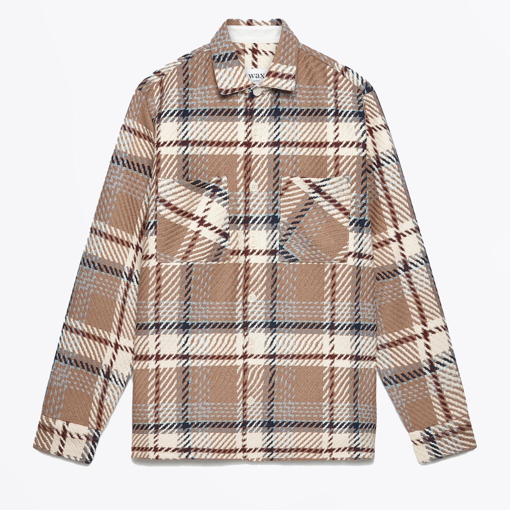 Wax London was founded with a dedication to create premium menswear with sustainability at its core. The brand aims to bring the manufacturing of British outerwear back to the UK. Wax London sources the most sustainably produced fabrics, using natural dyeing techniques, manufacturing closer to home, and donating profits to charity. A great way to add some variety to your new season wardrobe, this jacket features a checked pattern in a chunky yarn material, in navy, blue, cream, brown, and white shades. This jacket has front patch pockets, buttoned cuffs, a branded fabric tab at the side seam, a buttoned-down fastening, and a collared neckline. Wear this jacket with a Wax London basic top and some Handpicked jeans for a great casual look.