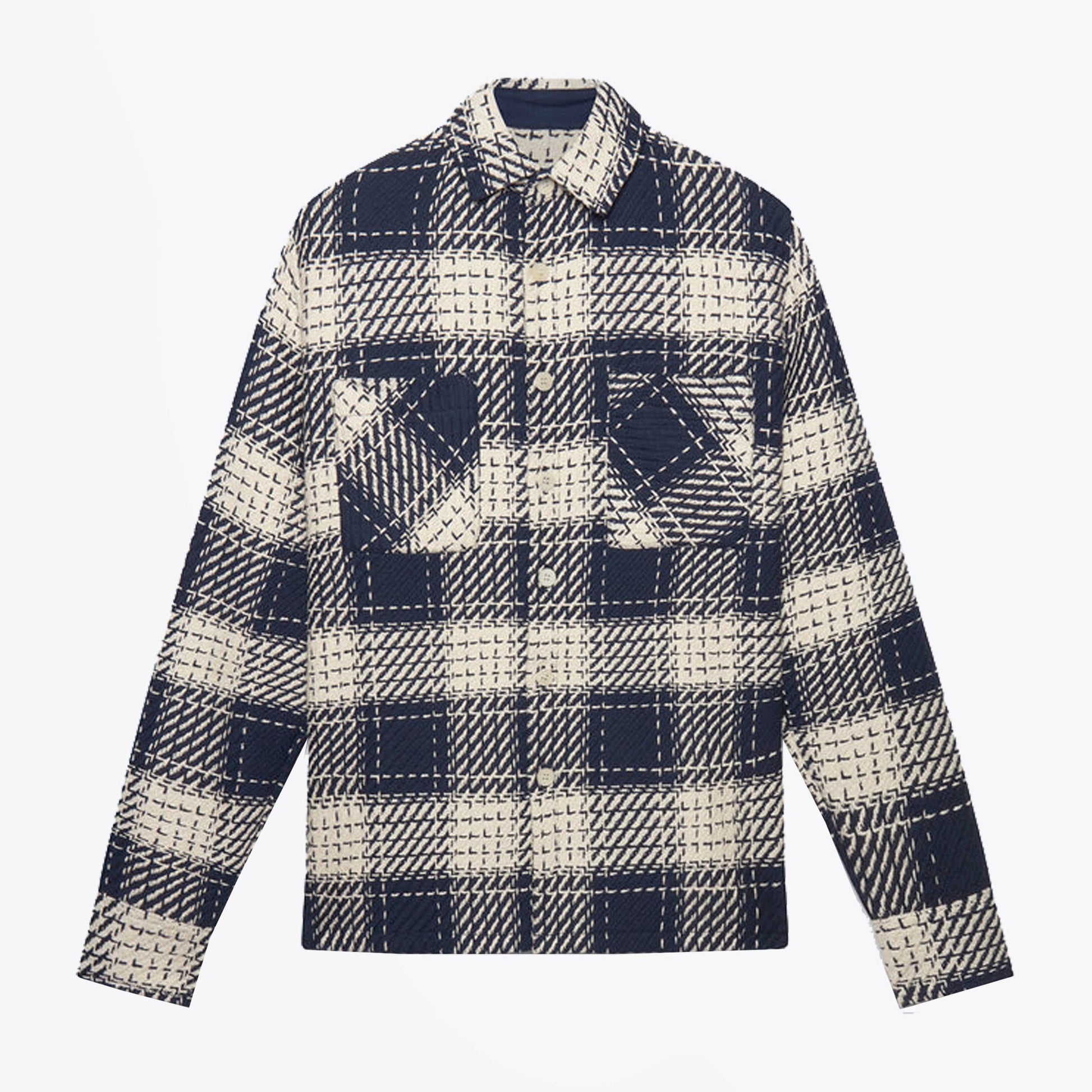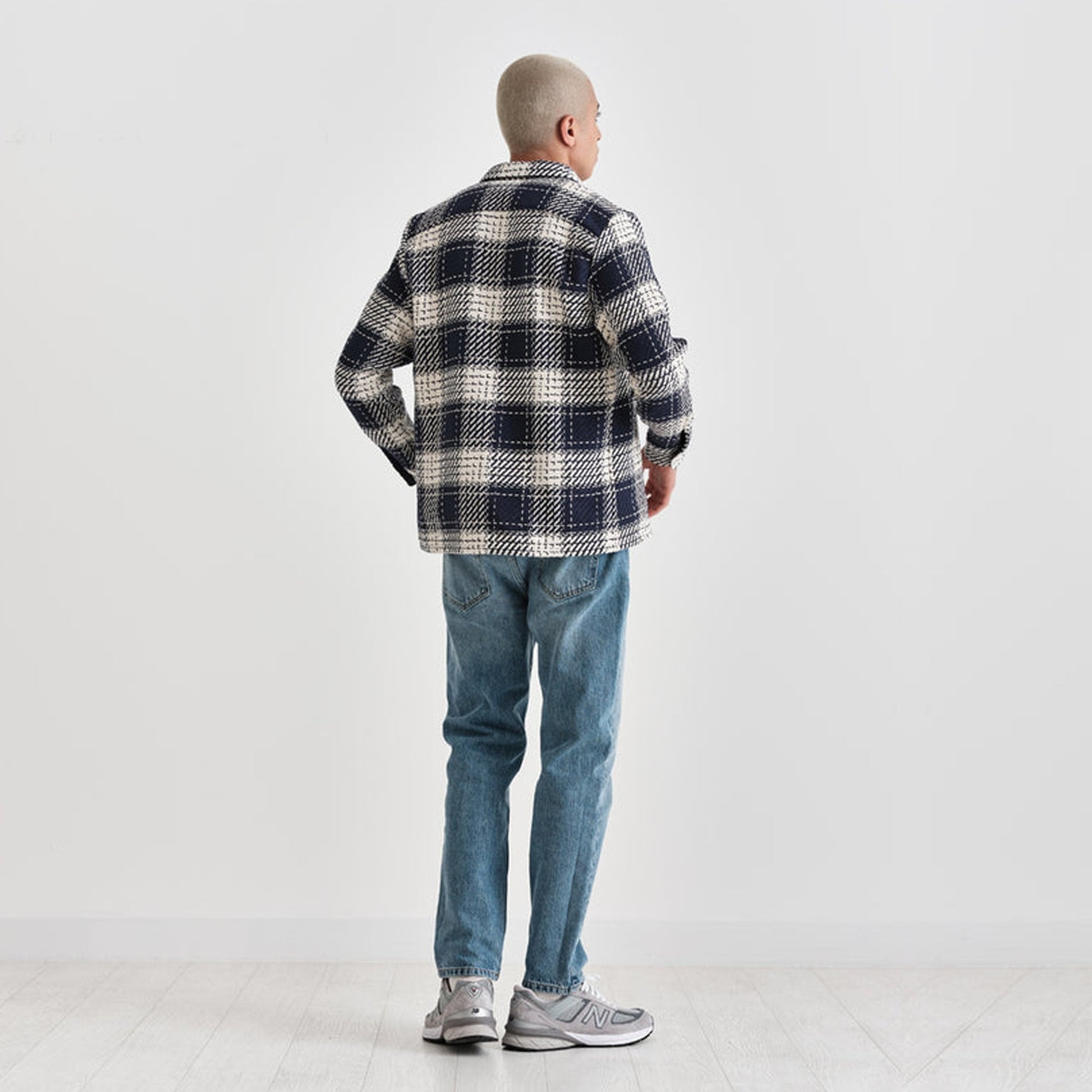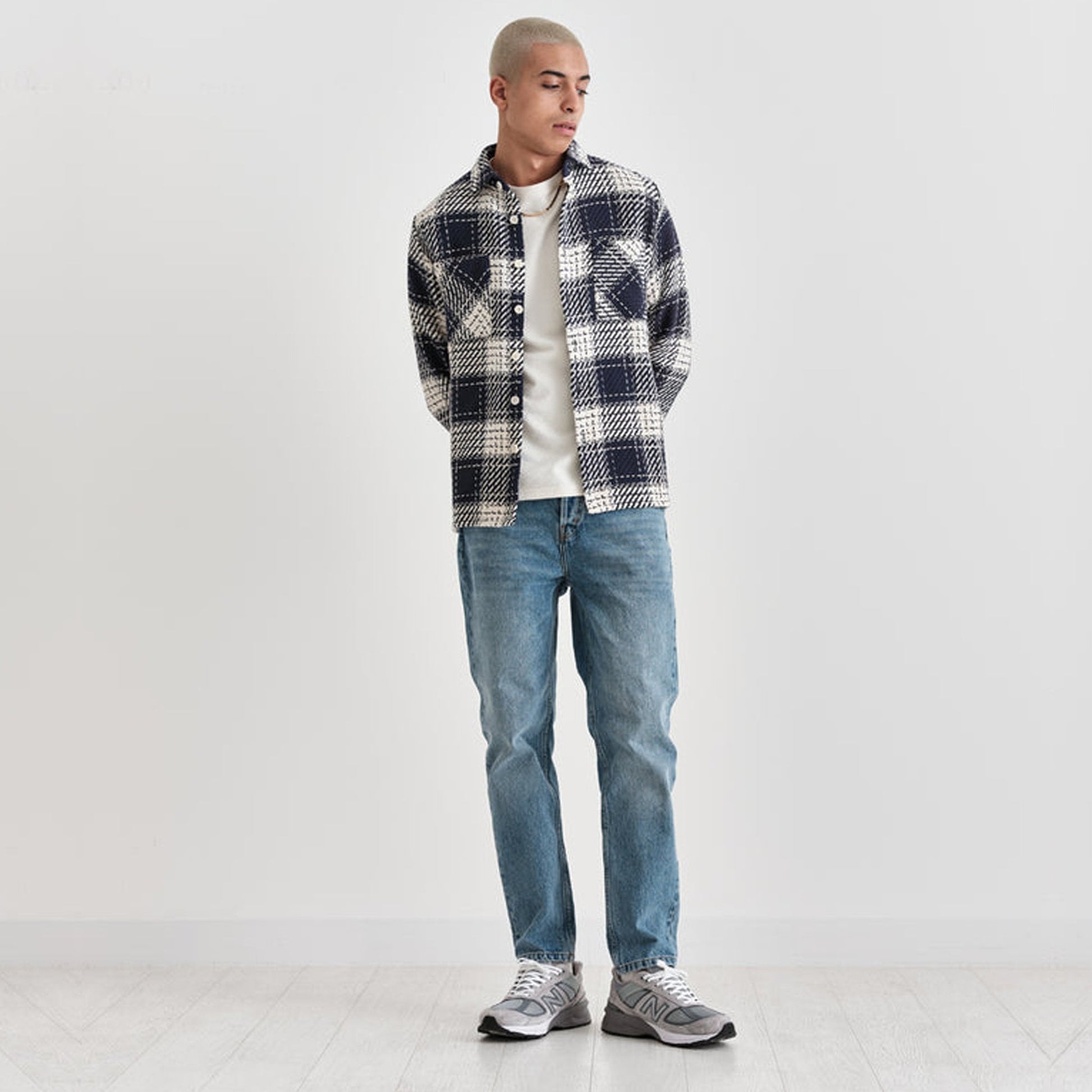 Wax London was founded with a dedication to create premium menswear with sustainability at its core. The brand aims to bring the manufacturing of British outerwear back to the UK. Wax London sources the most sustainably produced fabrics, using natural dyeing techniques, manufacturing closer to home, and donating profits to charity. This Whiting overshirt is the perfect addition to your year-round wardrobe, that is easily dressed up or dressed down. This jacket is crafted using recycled cotton and fibres made from a French mill. Featuring a blue and ecru check design, this overshirt has button-down fastenings with two patch pockets on the chest. Wear this overshirt over your favourite basic tee, with a pair of Wax London navy chinos.