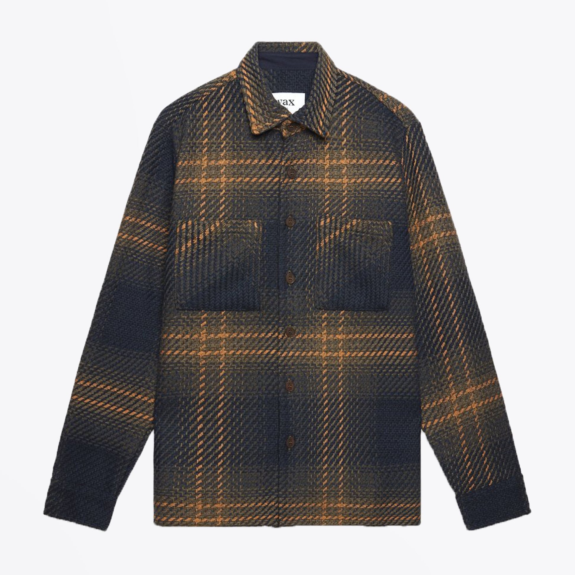 One of our newest labels, Wax London was founded with a dedication to create premium menswear with sustainability at its core. The brand aims to bring the manufacturing of British outerwear back to the UK. Wax London sources the most sustainably produced fabrics, using natural dyeing techniques, manufacturing closer to home and donating profits to charity. An homage to one of the founder's grandfathers, the Whiting overshirt has become an iconic Wax piece. Cut in the signature cotton blend fabric this large windowpane check overshirt in ombre navy and khaki shades features two front pockets and button down front with eco-friendly corozo nut buttons. Versatility is the Whiting’s number one strength. Wear it as a shirt, wear it as a jacket. Layer it under a coat, button it up over a t-shirt. Use it to add to an outfit, wear it to make an outfit.