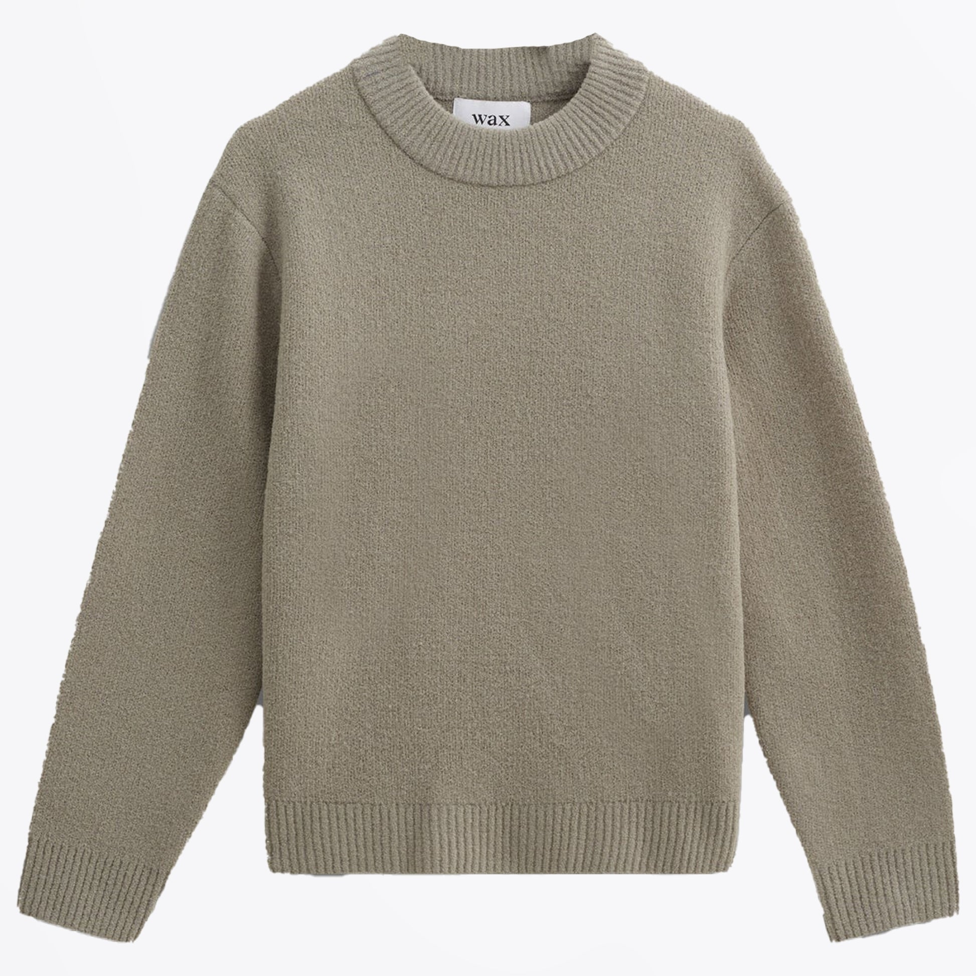 Wax London was founded with a dedication to create premium menswear with sustainability at its core. The brand aims to bring the manufacturing of British outerwear back to the UK. Wax London sources the most sustainably produced fabrics, using natural dyeing techniques, manufacturing closer to home, and donating profits to charity. Add some variety to your collection with this option from Wax London. This green Wilde jumper features a textured wool knit design, crew neckline, long sleeves, ribbed hem and cuffs. Wear this jumper with a pair of Universal Works trousers and Hoff sneakers.
