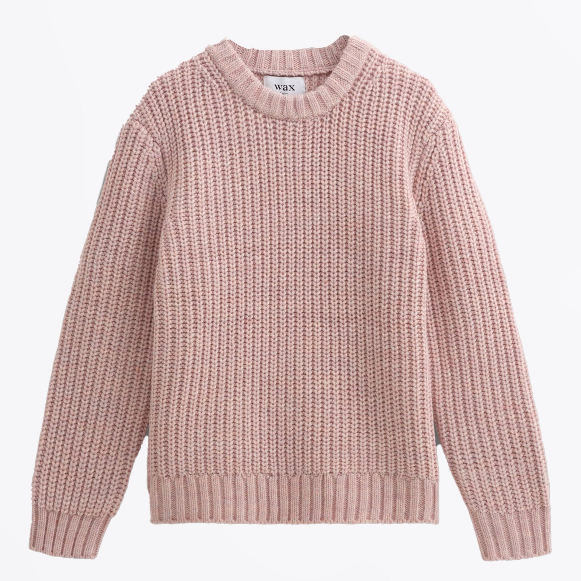 Wax London was founded with a dedication to create premium menswear with sustainability at its core. The brand aims to bring the manufacturing of British outerwear back to the UK. Wax London sources the most sustainably produced fabrics, using natural dyeing techniques, manufacturing closer to home, and donating profits to charity. Add some variety to your collection with this option from Wax London. This pink Wilde jumper features a chunky knit design, crew neckline, long sleeves, ribbed hem and cuffs. Wear this jumper with a pair of Universal Works trousers and Hoff sneakers.