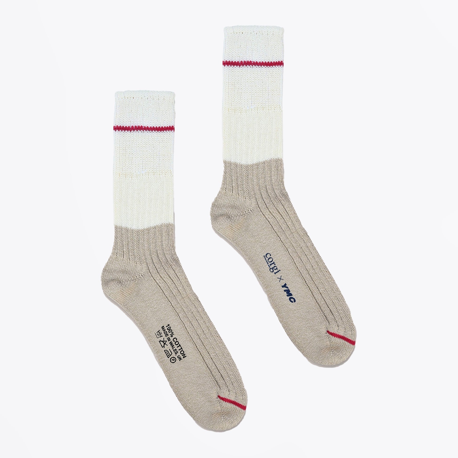 YMC - You Must Create is a London label was founded in 1995 and has established itself as one of the most enduring and influential independent brands to come out of the UK. Initially inspired by workwear and military clothing, the founders developed the unisex brand around the notion of creating understated and timeless garments. Today, YMC continues to subvert expectations while simultaneously capturing the cultural zeitgeist. Update everyday wardrobe with new daily staples. These socks feature a ribbed knitted design, off white and beige split design, a red contrast stripe at the hem with another red stipe at the toe. Wear these socks as part of your daily rotation with some designer trainers.