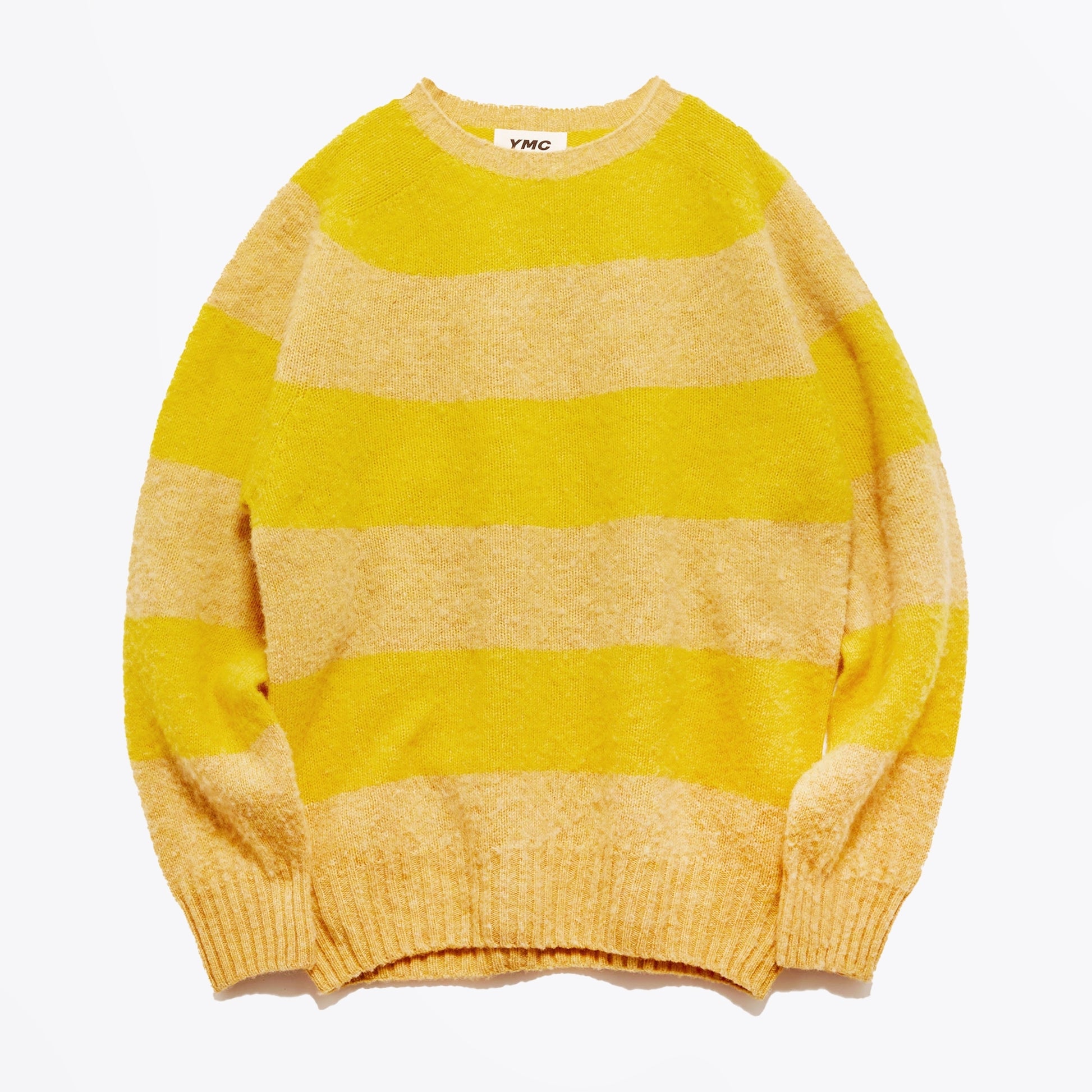 Introducing this seasons YMC collection, YMC - You Must Create to Mr & Mrs Stitch. This London label was founded in 1995 and has established itself as one of the most enduring and influential independent brands to come out of the UK. Initially inspired by workwear and military clothing, the founders developed the unisex brand around the notion of creating understated and timeless garments. Today, YMC continues to subvert expectations while simultaneously capturing the cultural zeitgeist. Give your wardrobe staples a designer addition with this option from YMC. Crafted with a soft lambswool with a yellow striped pattern. It also includes a crew neckline, ribbed neck, hem and cuffs. Style this shirt with your favourite pair of designer jeans and some Paul Smith trainers.