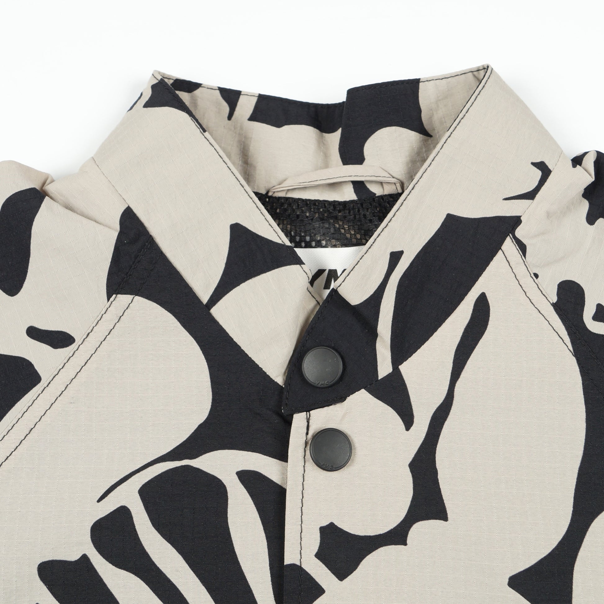 Introducing this seasons YMC collection, YMC - You Must Create to Mr & Mrs Stitch. This London label was founded in 1995 and has established itself as one of the most enduring and influential independent brands to come out of the UK. Initially inspired by workwear and military clothing, the founders developed the unisex brand around the notion of creating understated and timeless garments. Today, YMC continues to subvert expectations while simultaneously capturing the cultural zeitgeist. Give your wardrobe staples a designer addition with this option from YMC. This surf jacket has a black and grey floral contrast design throughout. The garment also features a button up fastening, raglan sleeves, baseball style collar, elasticated hem cord and has a perforated mesh body and silver lining. Wear this t-shirt with the Wild Ones t-shirt and a pair of Alva Skate trouser.