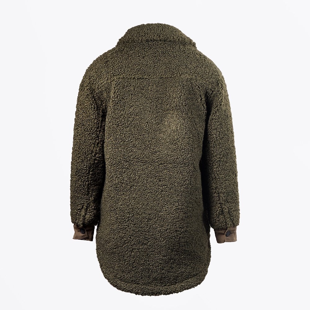 JUST female is a Copenhagen-based contemporary, ready-to-wear brand with an environmentally and socially friendly approach to fashion. At JUST female you will find high quality ready-to-wear fashion with essential styles that can be dressed up or down for life’s many festivities, likely to become wardrobe stables for many seasons to come. This classic olive green shirt jacket crafted in cosy soft teddy fabric features a classic collar, chest button patch pockets, long sleeves with button cuffs, button-up front and oversize fit.