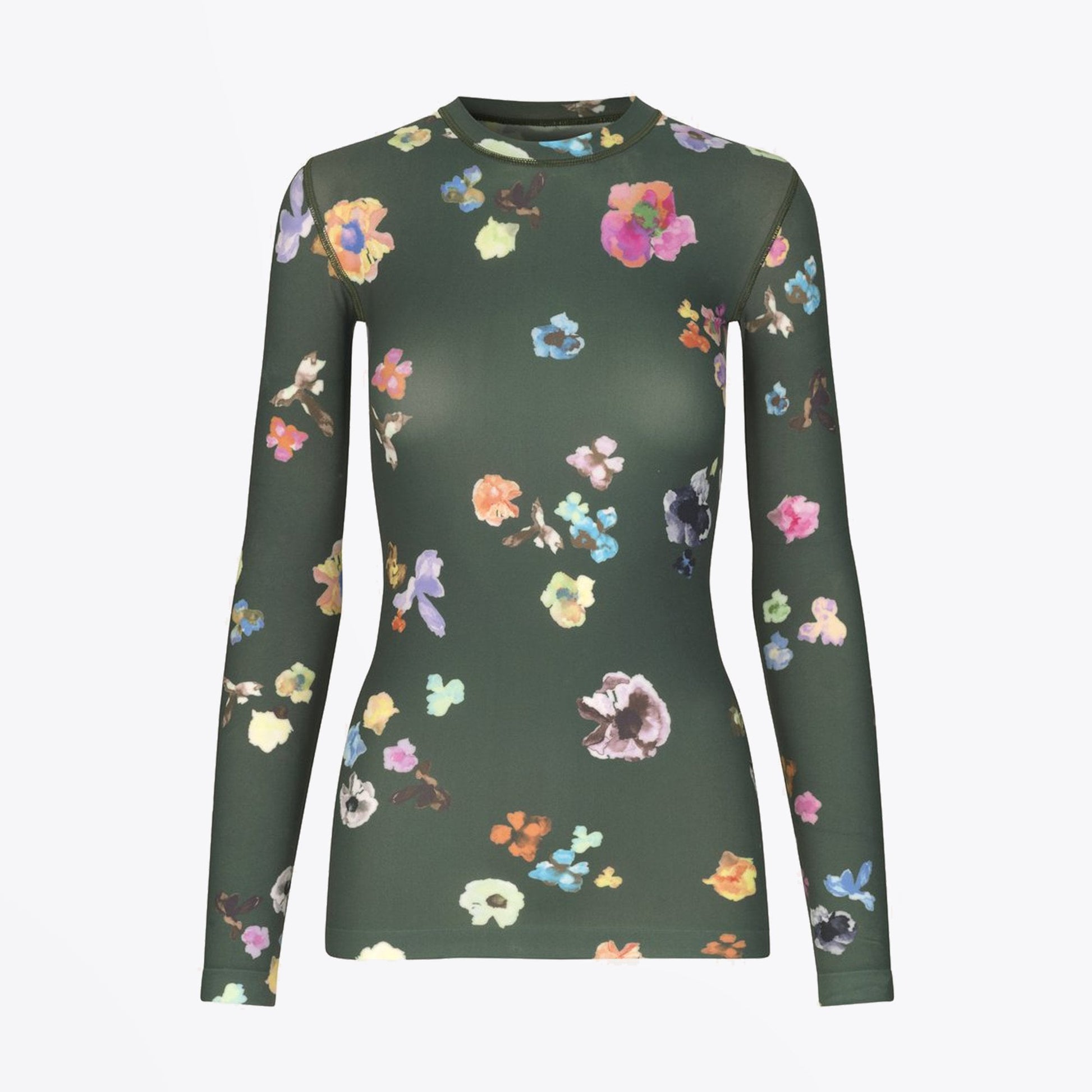 Danish designer Stine Goya launched her eponymous label in 2006 with a rich exploration of colour and print. Drawing on inspiration from the design and art worlds, each collection is built on a strong foundation of flattering cuts, simple yet quality fabrics and bespoke hand-drawn prints by the brands in-house team. Stine Goya's Juno Floral Top with all-over floral print on a dark green background. It is designed for an slim fit and features long sleeves in a thin stretchy fabric. Match it with your favourite skirt or pants from the new collection.